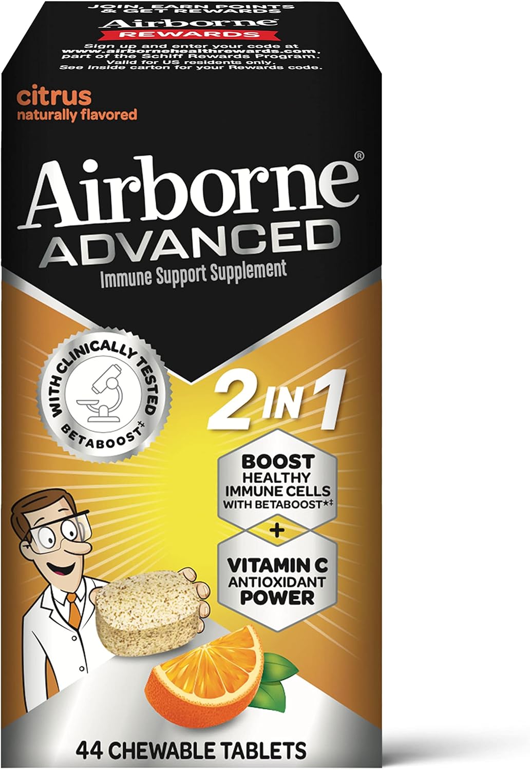 2 >WHY TO TAKE AIRBORNE: Airborne is the #1 Immune Support Gummy, Effervescent & Chewable Brand. These delicious tasting Airborne Advanced Citrus Chewables are convenient for your family and easy for you to take on the go