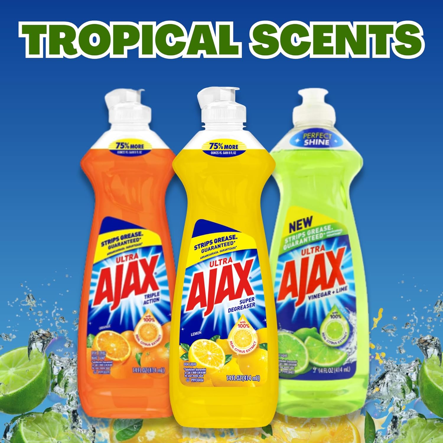 Ajax Dish Soap - Ajax Dishwashing Liquid Super Degreaser 14 Fl Oz (Lemon, Orange, Lime) (Variety Pack Of 6) 2 Of Each - Includes Clean Is Better Card
