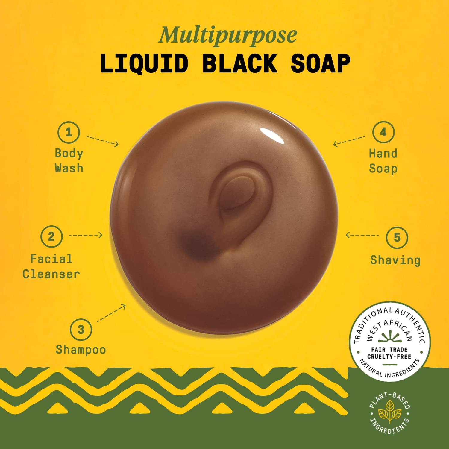 About this item VERSATILE BLACK SOAP BUNDLE: This liquid African Black Soap 2-pack includes a convenient 2-ounce bottle, Eucalyptus Tea Tree, for travel, and a large 32-ounce squeeze bottle, Hemp Olive Leaf, for every day. BATH ESSENTIALS: If you have dry, sensitive, or acne-prone skin, this soothing multi-use cleanser is a must-have in your daily bath and shower essentials. ITCHY SCALP SHAMPOO: The African soap formula is perfect for everyday use or as a dandruff shampoo, gently clarifying and purifying the hair and scalp. MOISTURIZING SHAVE SOAP: Enjoy a rich, creamy lather that creates a protective cushion between your skin and razor, ensuring a smooth, effortless glide for a more comfortable shave. TIME-TESTED SHEA BUTTER SOAP FORMULA: Crafted with care using Fair-Trade shea butter and orangutan-safe West African palm oil, this cruelty-free and vegan soap is a testament to centuries-old traditions of Togolese mamans. See more product details,VERSATILE BLACK SOAP BUNDLE: This liquid African Black Soap 2-pack includes a convenient 2-ounce bottle, Eucalyptus Tea Tree, for travel, and a large 32-ounce squeeze bottle, Hemp Olive Leaf, for every day,BATH ESSENTIALS: If you have dry, sensitive, or acne-prone skin, this soothing multi-use cleanser is a must-have in your daily bath and shower essentials,ITCHY SCALP SHAMPOO: The African soap formula is perfect for everyday use or as a dandruff shampoo, gently clarifying and purifying the hair and scalp,MOISTURIZING SHAVE SOAP: Enjoy a rich, creamy lather that creates a protective cushion between your skin and razor, ensuring a smooth, effortless glide for a more comfortable shave,TIME-TESTED SHEA BUTTER SOAP FORMULA: Crafted with care using Fair-Trade shea butter and orangutan-safe West African palm oil, this cruelty-free and vegan soap is a testament to centuries-old traditions of Togolese mamans