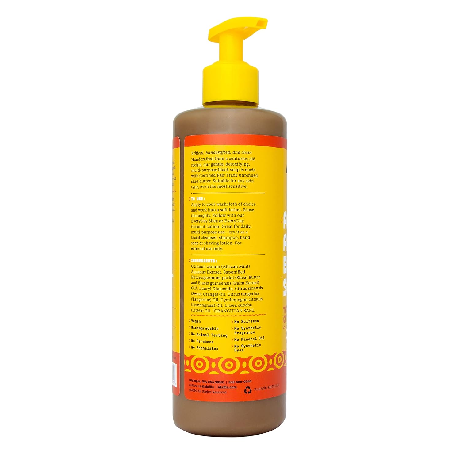 Alaffia Skin Care, Authentic African Black Soap, All In One Body Wash, Face Wash, Shampoo & Shaving Soap With Fair Trade Shea Butter, Tangerine Citrus, 16 Fl Oz