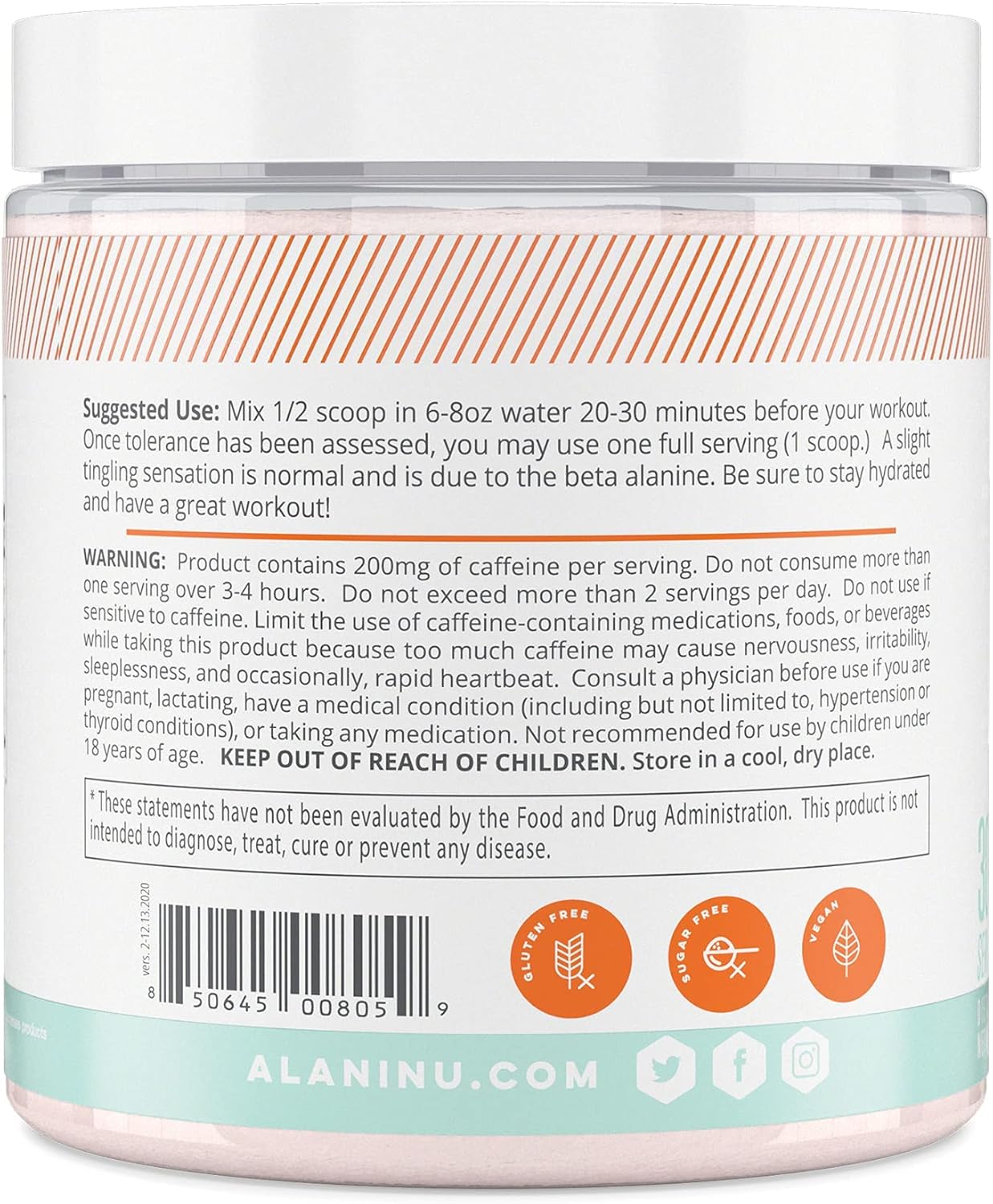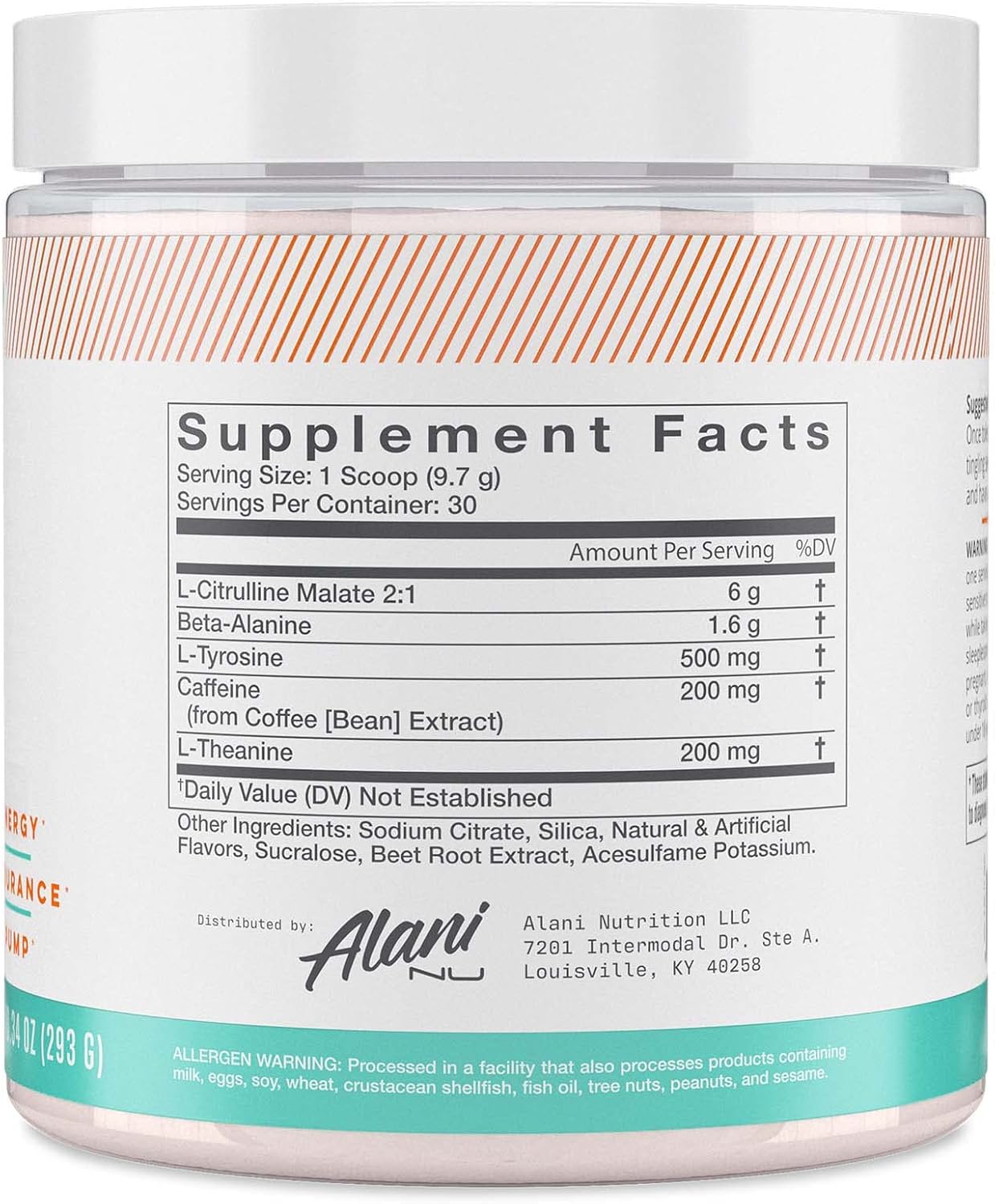 Increase Performance: Take 20-30 Minutes Before Your Workout For Sustained Energy And Endurance To Help Achieve Your Fitness Goals. Alani Nu Preworkout Contains Essential Amino Acids Like L-Theanine To Prevent You From Crashing, Citrulline To Improve The Amount Of Oxygen In Your Muscle Tissue, Provides Enzymes Crucial To Cardiovascular Health, And Beta Alanine To Regulate Lactic Acid Accumulation In Muscles