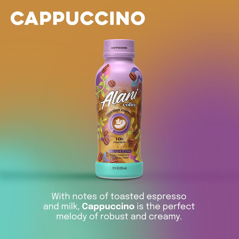 Alani Nu Protein Coffee Cappuccino | Ready To Drink Cold Brew With 10G Of Protein | 100Mg Caffeine | 90 Calories, Naturally Flavored | 12 Fl Oz Bottles | 12 Pack