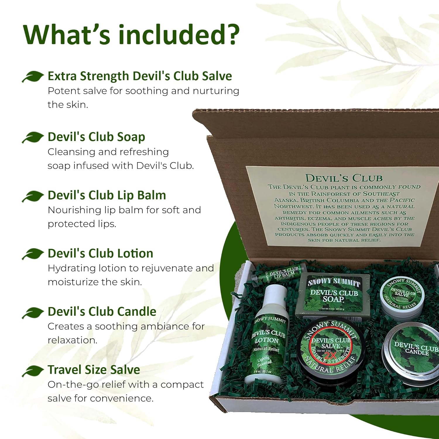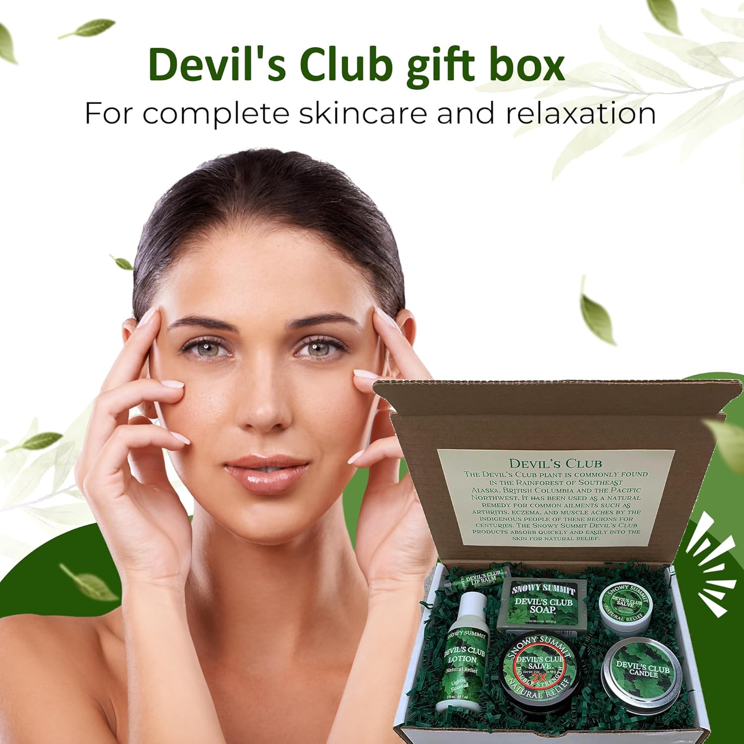 Alaskan Devil'S Club Gift Set - Natural Skincare Collection With Salve, Body Lotion, Lip Balm, Soap & Candle - Handcrafted Beauty Care Package For Skin Care & Gifting