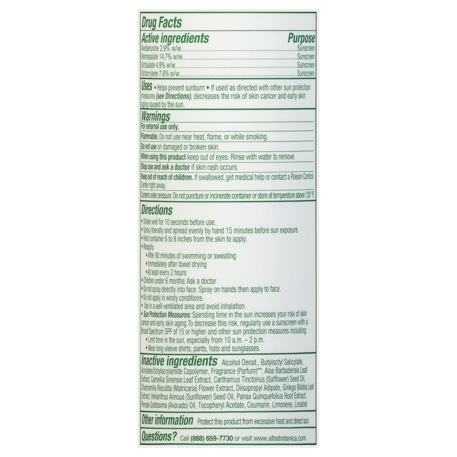 About this item SPF 50 SUN PROTECTION: Recommended by the Skin Cancer Foundation, this water-resistant, broad-spectrum sunscreen helps shield the skin from harmful UV rays BEACH ESSENTIAL: Made with 100% vegetarian ingredients and botanicals, our biodegradable SPF 50 formula offers sun protection your skin will love COCONUT SUNSCREEN: A lightweight and quick-drying sunscreen spray featuring ingredients like aloe vera, safflower oil, avocado oil, and fragrant coconut DISCOVER ALBA BOTANICA SUN CARE: Build out your sun care collection with Alba Botanica's complete line of sunscreen sprays, sunscreen lotions, mineral-based sunscreens, and after-sun products HAWAIIAN SUNSCREEN SPRAY: Includes one 5 fl. oz. bottle of Alba Botanica Hawaiian Coconut Sunscreen Spray, SPF 50  See more product details,SPF 50 SUN PROTECTION: Recommended by the Skin Cancer Foundation, this water-resistant, broad-spectrum sunscreen helps shield the skin from harmful UV rays,BEACH ESSENTIAL: Made with 100% vegetarian ingredients and botanicals, our biodegradable SPF 50 formula offers sun protection your skin will love,COCONUT SUNSCREEN: A lightweight and quick-drying sunscreen spray featuring ingredients like aloe vera, safflower oil, avocado oil, and fragrant coconut,DISCOVER ALBA BOTANICA SUN CARE: Build out your sun care collection with Alba Botanica's complete line of sunscreen sprays, sunscreen lotions, mineral-based sunscreens, and after-sun products,HAWAIIAN SUNSCREEN SPRAY: Includes one 5 fl. oz. bottle of Alba Botanica Hawaiian Coconut Sunscreen Spray, SPF 50