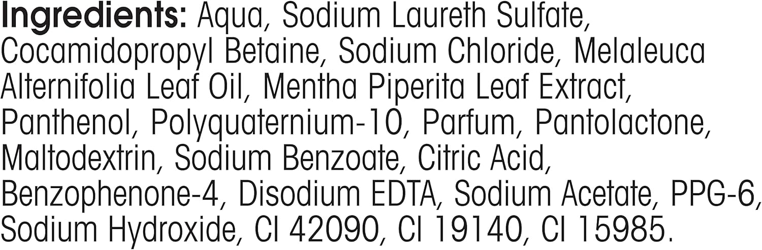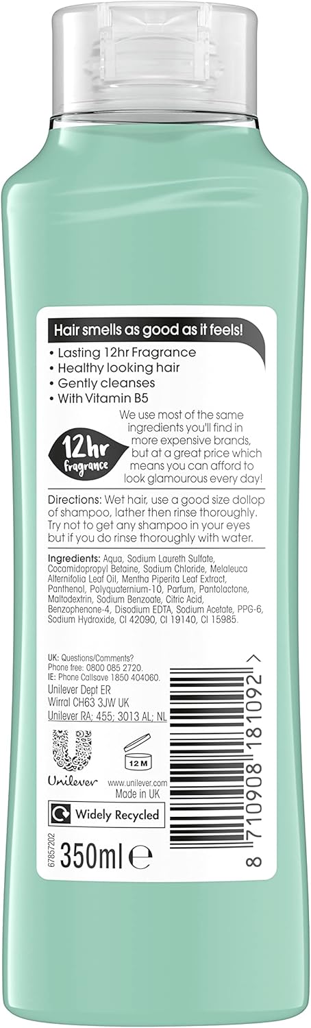Product Description Fancy giving your hair a treat This Tea Tree Tingle shampoo will make you want to leap out of bed to awaken your senses with hair that feels minty fresh. It uses most of the same ingredients you'll find in more expensive brands, but at a great price which means you can afford to look glamorous every day. This daily hair shampoo revives and refreshes your locks with a tingling, minty-fresh fragrance that lasts up to 12 hours. The improved formulation contains strengthening pro-vitamin B5 and is suitable for all the hair types in your family. How to use: Wet hair, use a good size dollop of shampoo, lather then rinse thoroughly. Try not to get any shampoo in your eyes but if you do rinse thoroughly with water. Alberto Balsam has been providing excellent affordable family hair care products to UK families for generations. Over the years, we've learned to celebrate all the small things that make life beautiful. That's why we use delicious natural ingredients, like raspberry, coconut, blueberry and apple in our products to give you little moments of joy with their lovely fragrances. With our value shampoo, hair smells as good as it feels. Our extensive range of fresh ‘n’ fruity fragrances means that everyone in the family will be able to find their perfect Alberto Balsam shampoo scent, for a fantastically fragrant in-wash experience and delicious smelling hair. The perfect family shampoo. Ingredients Aqua, Sodium Laureth Sulfate, Cocamidopropyl Betaine, Sodium Chloride, Benzophenone-4, Citric Acid, Disodium EDTA, Isopropyl Alcohol, Maltodextrin, Melaleuca Alternifolia Leaf Oil, Mentha Piperita Leaf Extract, Panthenol, Pantolactone, Parfum, Polyquaternium-10, PPG-12, Sodium Acetate, Sodium Benzoate, Sodium Hydroxide, CI 15985, CI 19140, CI 42090 P.when('A').execute(function(A) { A.on('a:expander:toggle_description:toggle:collapse', function(data) { window.scroll(0, data.expander.$expander[0].offsetTop-100); }); }); Directions Wet hair, use a good size shampoo and then lather it thoroughly. Try not to get shampoo in your eyes, but if you rinse thoroughly with water. Safety Warning Directions: Wet hair, use a good size dollop of shampoo, lather then rinse thoroughly. Try not to get any shampoo in your eyes but if you do rinse thoroughly with water. Manufacturer Contact Information Unilever Dept ER, Wirral, CH63 3JW, UK. See more,Alberto Balsam Tea Tree Tingle Invigorating Shampoo 350 ml gives you healthy looking hair with a lasting minty-fresh fragrance,The whole family will love this gentle cleansing shampoo, which is suitable for all hair types,This invigorating shampoo detangles and smoothes your hair and contains strengthening pro-vitamin B5,The fresh burst of minty fragrance in this shampoo will make your hair smell as good as it feels for up to 12 hours,Alberto Balsam products deliver great quality hair care for all the family,We have been providing excellent affordable hair products to UK families for generations