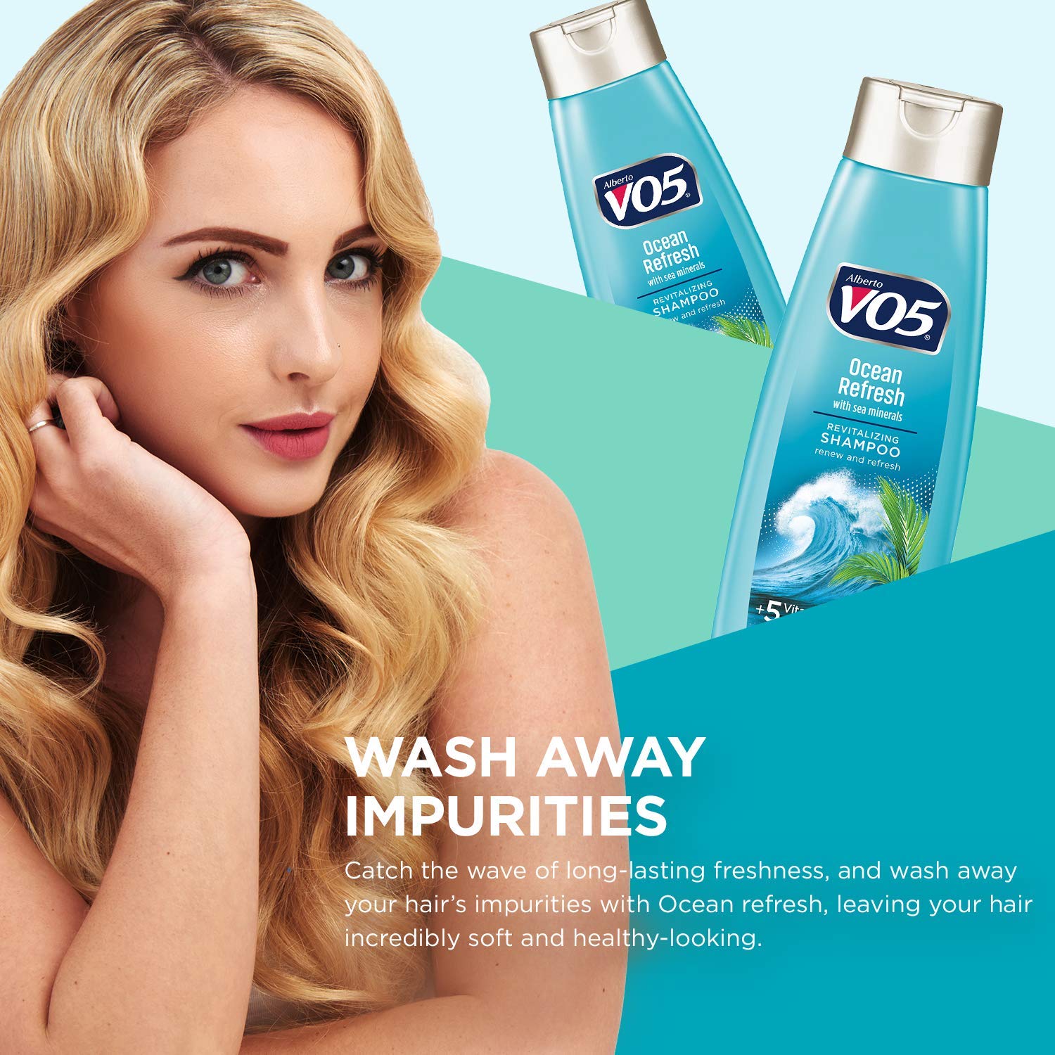 OCEAN REFRESH REVITALIZING SHAMPOO: Alberto VO5's unique formula blended with the Power of 5 vitamins and 5 natural oils provides beautiful soft, shiny hair. Thatâs the secret of VO5. 12.5 oz. Bottle