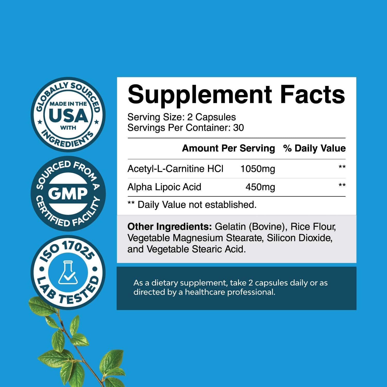 ALC ALA supplement - Try our pure alpha-lipoic acid and Acetyl l carnitine complex for a wellness boost ranging from Nerve support Heart health Brain support and to Boost metabolism for weight lossYouthful supplement - ALA has a rich-antioxidant profile which can improve skin health and even promote your anti wrinkle and fine lines efforts and may work as a memory supplement for brain healthNatural weight loss supplements - Acetyl-l-carnitine and ALA have been shown to be well tolerated as weight loss pills for women and men thanks to their AMPK metabolic activator formulaPre workout supplement - ALA dietary supplements for weight loss may enhance the number of amino acids and creatine absorbed by the muscles while breaking down carbs in the body quickerPremium quality - We know you’ll love our ALA and ALC supplement since our products are formulated in the USA in a GMP certified facility so you can trust the quality of our weight loss supplement pills