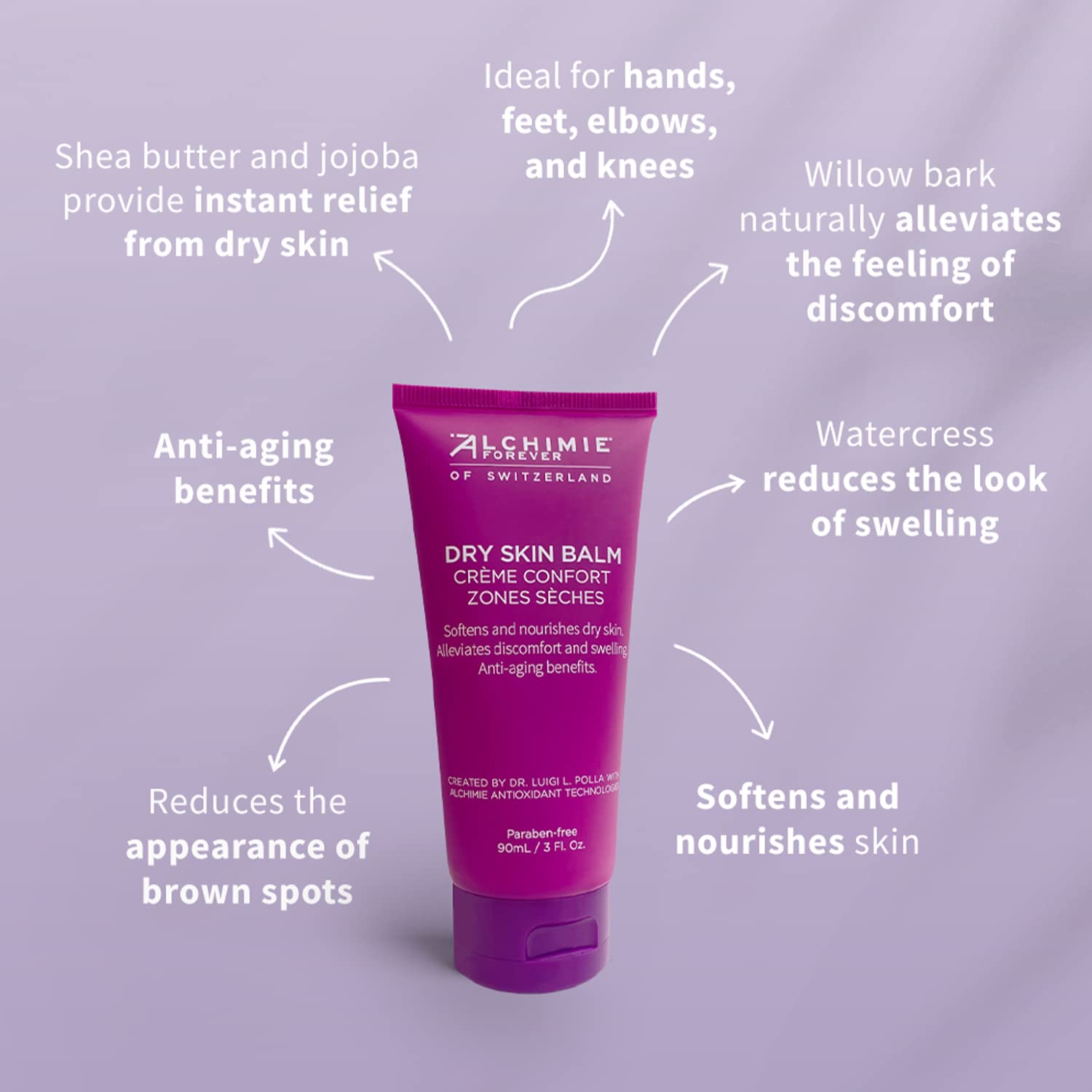 Alchimie Forever Dry Skin Balm | Silky Cream Balm Softens & Nourishes Dry, Chapped, Shea Butter, Jojoba, & Willow Bark I Ideal For Hands, Feet, Elbows, Knees I Anti-Aging 3Oz
