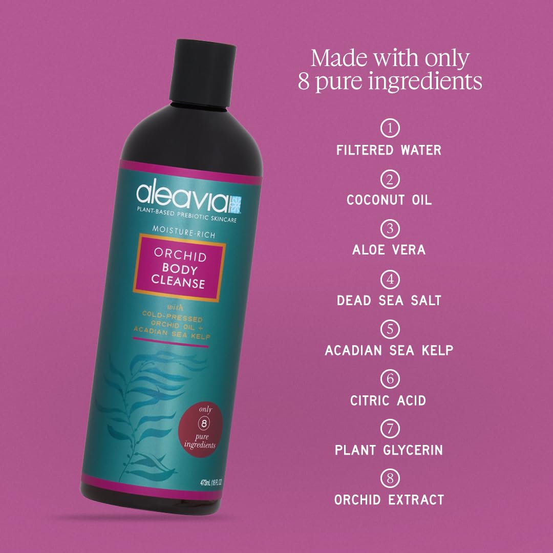 ORCHID BODY LOTION - Enjoy a fresh, clean floral scent thanks to natural, cold-pressed orchid oil. Aleavia’s Orchid Prebiotic Body Lotion feeds your skin with anti-aging antioxidants and skin softening fruit oils so you can ditch the chemicals and heal your sensitive skin. Simply smooth lotion over the body daily, preferably after showering for best absorption. PLANT-BASED - Prebiotic skincare is all about replenishing your skin's healthy bacteria so it can heal itself. Aleavia’s Orchid Prebiotic Body Lotion includes all-natural and organic ingredients that restore your skin microbiome so that you can achieve radiant, healthy skin all without toxins and synthetic chemicals. HEALING PROPERTIES - Our line of all-natural body lotions are not just perfect to nourish your skin on a daily basis, but they can also be used to see relief from common skin issues like allergic dermatitis, eczema, rosacea, and keratosis. PARABEN-FREE, RESTORATIVE BODY LOTION - All Aleavia Skin Care products are baby safe, and we never use parabens, harmful toxins, synthetic chemicals, or artificial fragrances. Our body lotions are perfect for every skin type, especially if you or anyone in your family has sensitive skin. SOFT, NOURISHED, SMOOTH SKIN - Here at Aleavia Skin Care, our top priority is making sure you are completely satisfied with our products. Let us know if there's anything wrong. ORCHID SCENTED - Orchid oil has been used for centuries in Asia for its repairing and protective properties. Often considered the "perfect plant" for the skin, orchid oil is rich with minerals that exist naturally in the skin such as calcium, copper, iron, magnesium, and zinc. The relaxing scent of orchids will help melt away tension while the all-natural ingredients soothe sensitive skin and decrease inflammation. ALL-NATURAL - Our invigorating orchid body wash is free of all artificial fragrances and dyes and contains organic ingredients that revitalize the skin by feeding it what it needs most, actin,ORCHID SCENTED - Orchid oil has been used for centuries in Asia for its repairing and protective properties. Often considered the "perfect plant" for the skin, orchid oil is rich with minerals that exist naturally in the skin such as calcium, copper, iron, magnesium, and zinc. The relaxing scent of orchids will help melt away tension while the all-natural ingredients soothe sensitive skin and decrease inflammation,PLANT-BASED - Prebiotic skincare is all about replenishing your skin's healthy bacteria so it can heal itself. Aleavia’s Orchid Prebiotic Body Cleanse and Lotion includes all-natural and organic ingredients that restore your skin microbiome so that you can achieve radiant, healthy skin all without toxins and synthetic chemicals,PARABEN-FREE, RESTORATIVE BODY PRODUCTS - All Aleavia Skin Care products are baby safe, and we never use parabens, harmful toxins, synthetic chemicals, or artificial fragrances. Our products are perfect for every skin type, especially if you or anyone in your family has sensitive skin,HEALING & PURIFYING PROPERTIES - Our line of organic skincare is not only perfect to clean and moisturize your skin on a daily basis, but will also actively fight and help eradicate the toughest of skins conditions such as Eczema, Psoriasis, Keratosis and Acne. Derived from earth and ocean, the ingredients found in our products are nothing like the toxic chemicals in other man-made items,SOFT, NOURISHED, SMOOTH SKIN - Here at Aleavia Skin Care, our top priority is making sure you are completely satisfied with our products. Let us know if there's anything wrong