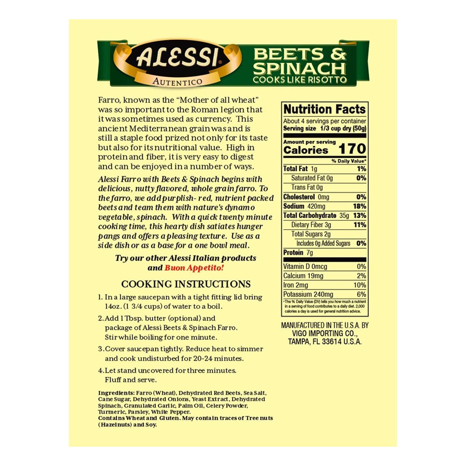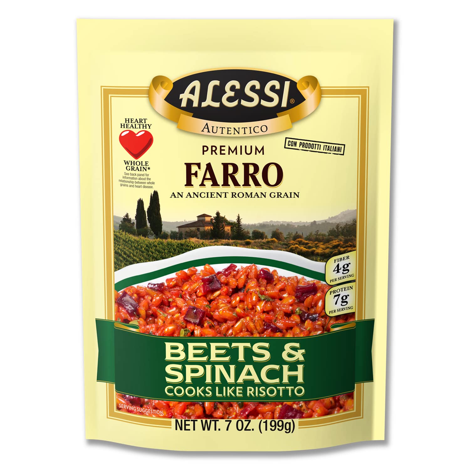 Alessi Autentico, Premium Seasoned Roman Grain Farro, Cooks Like Risotto, Heart Healthy, Easy To Prepare, 7Oz (Beets & Spinach, Pack Of 6)