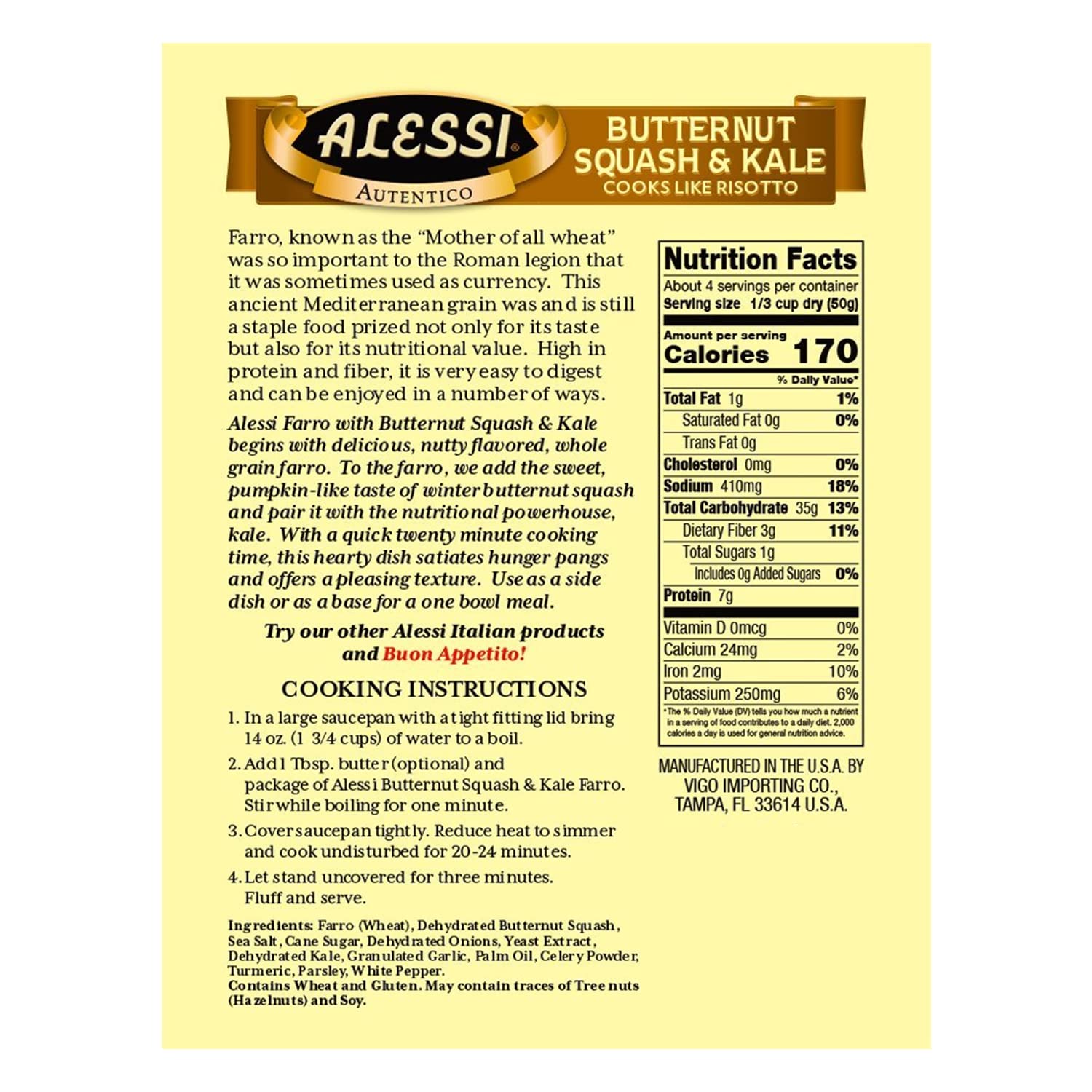 Alessi Autentico, Premium Seasoned Roman Grain Farro, Cooks Like Risotto, Heart Healthy, Easy To Prepare, 7Oz (Butternut Squash & Kale, Pack Of 6)