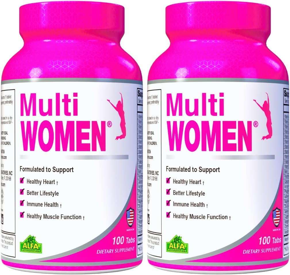 Alfa Vitamins Multi Women Vitamins Dietary Supplement With Essential Vitamins & Minerals For Women - Amino Acids + Antioxidants - 100 Tablets (2 Pack)