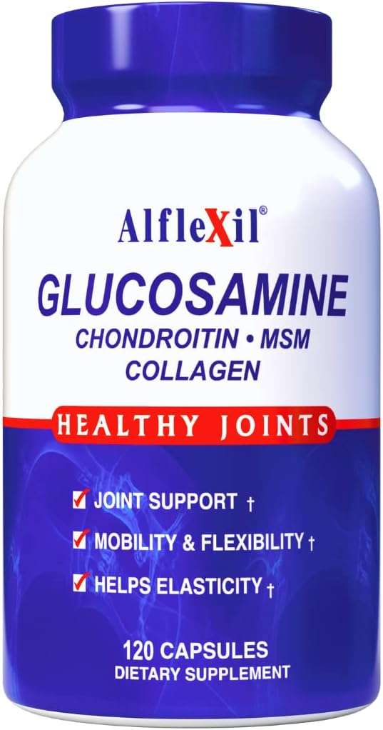Alflexil Premium Glucosamine & Chondroitin Nutritional Supplement - Healthy Joint, Bone & Knee Support - Rich In Msm & Collagen - Organic Natural Ingredients - Made In Usa - 120 Capsules