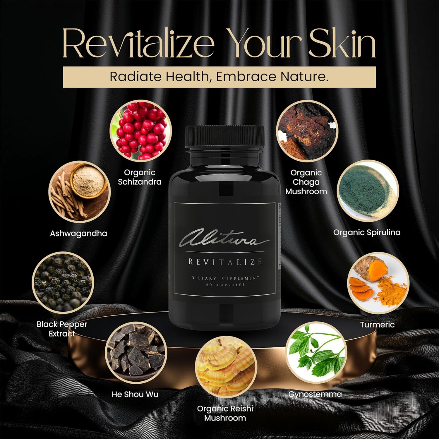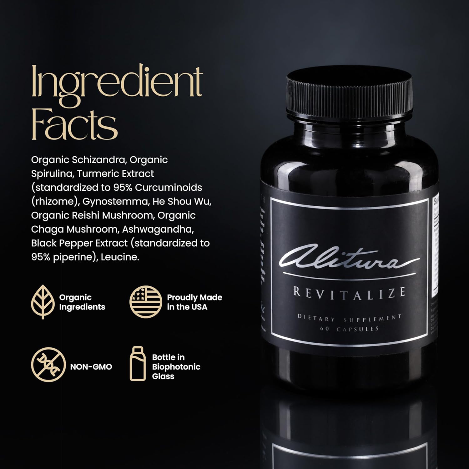 Alitura Revitalize – Organic Ashwagandha & Turmeric Supplement – Natural Energy, Mood & Recovery Support For Men & Women – Adaptogenic Herbs For Daily Wellness – 60 Capsules