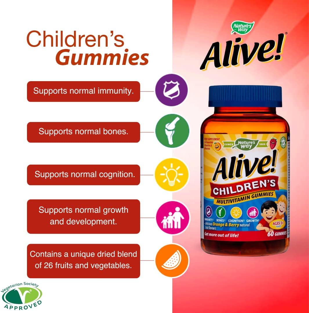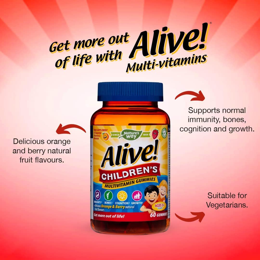 Alive! Children’S Multivitamin Gummies | 60 Chewable Gummies | Specially Balanced Formulation For Children Aged 3+