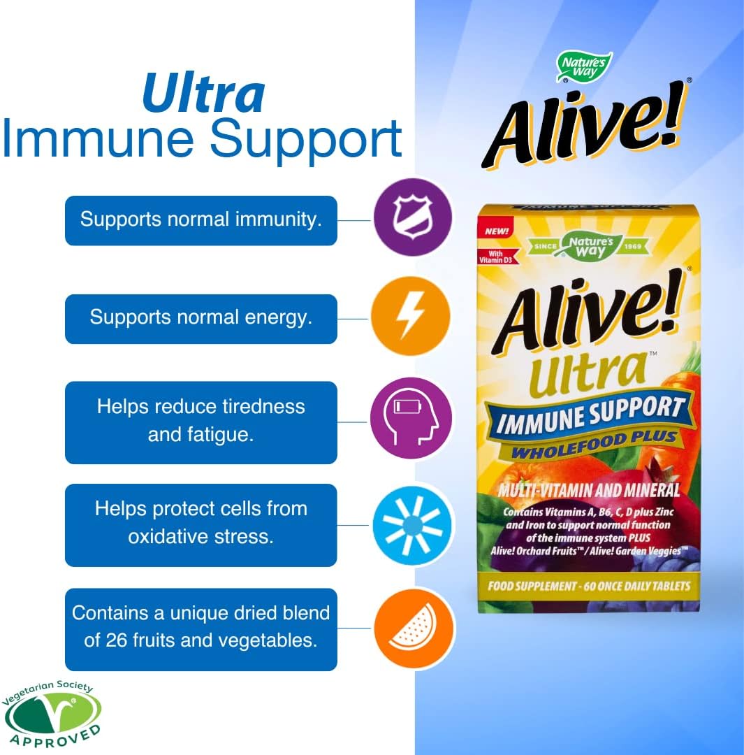 Alive! Ultra Immune Support Wholefood Plus, Contains 22 Vitamins And Minerals, Specifically Formulated To Support The Immune System - 60 Tablets