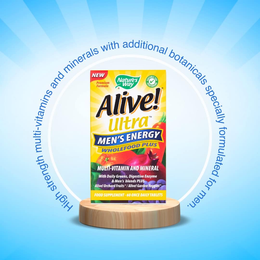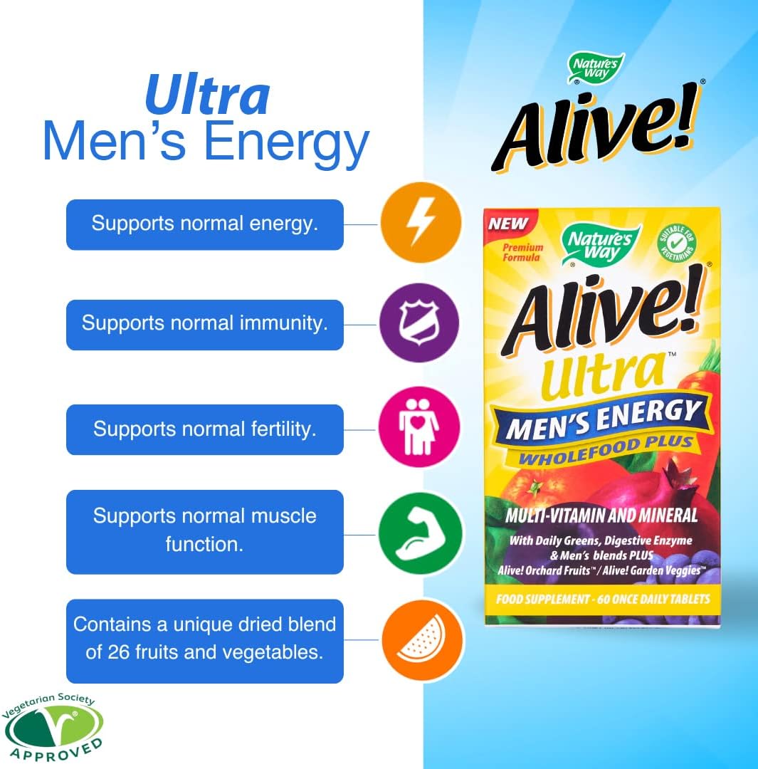 Alive! Ultra Men’S Energy Wholefood Plus, 26 Essential Vitamins And Minerals, Unique Botanical Blends, Specially Formulated For Men, Suitable For Vegetarians - 60 Tablets