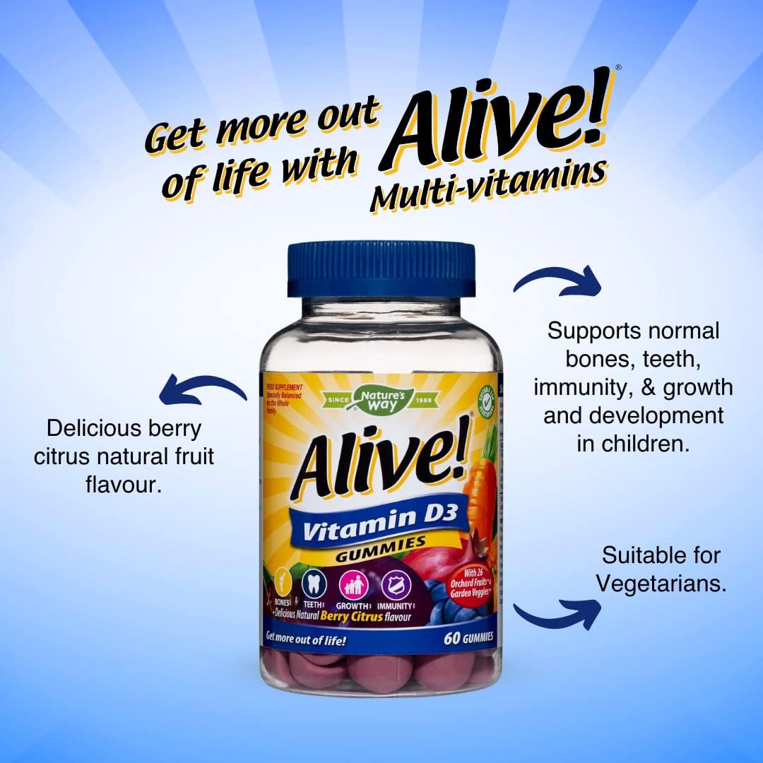 Alive! Vitamin D3 Gummies, Natural Berry Citrus Flavour, 60 Chewable Gummies