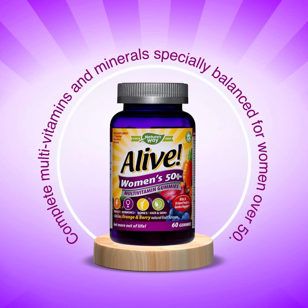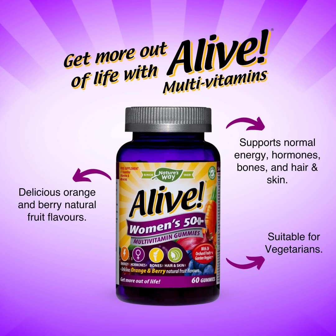 Alive! Women’S 50+ Multivitamin Gummies, Multi-Vitamins & Minerals With A Blend Of 26 Fruits & Vegetables, Specially Balanced Formulation For Women, Suitable For Vegetarians - 60 Gummies