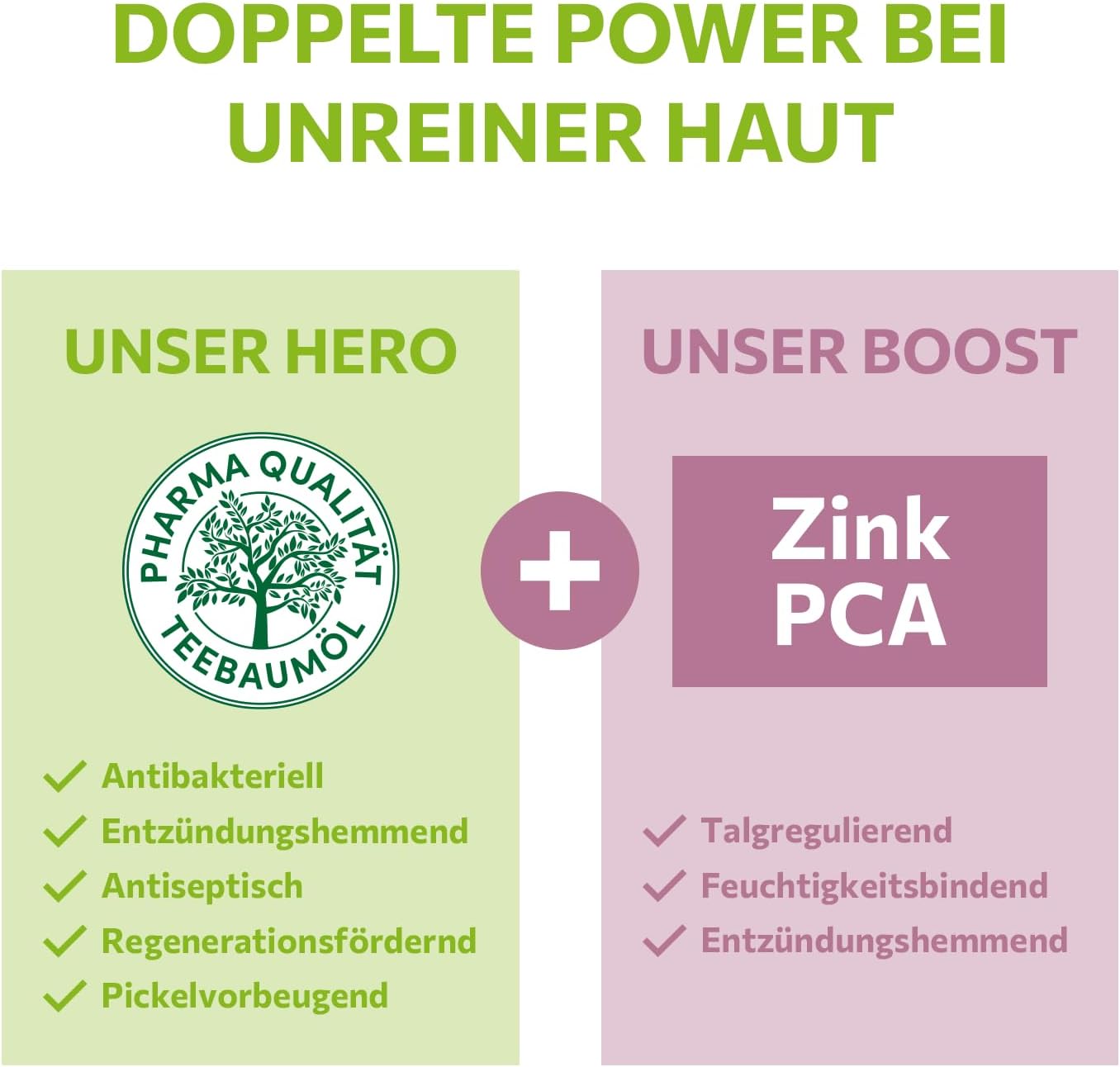 Effective care – the highly effective formula with tea tree oil, panthenol and allantoin visibly reduces les, blackheads and other blemishes and is also gentle on the skin without irritating them