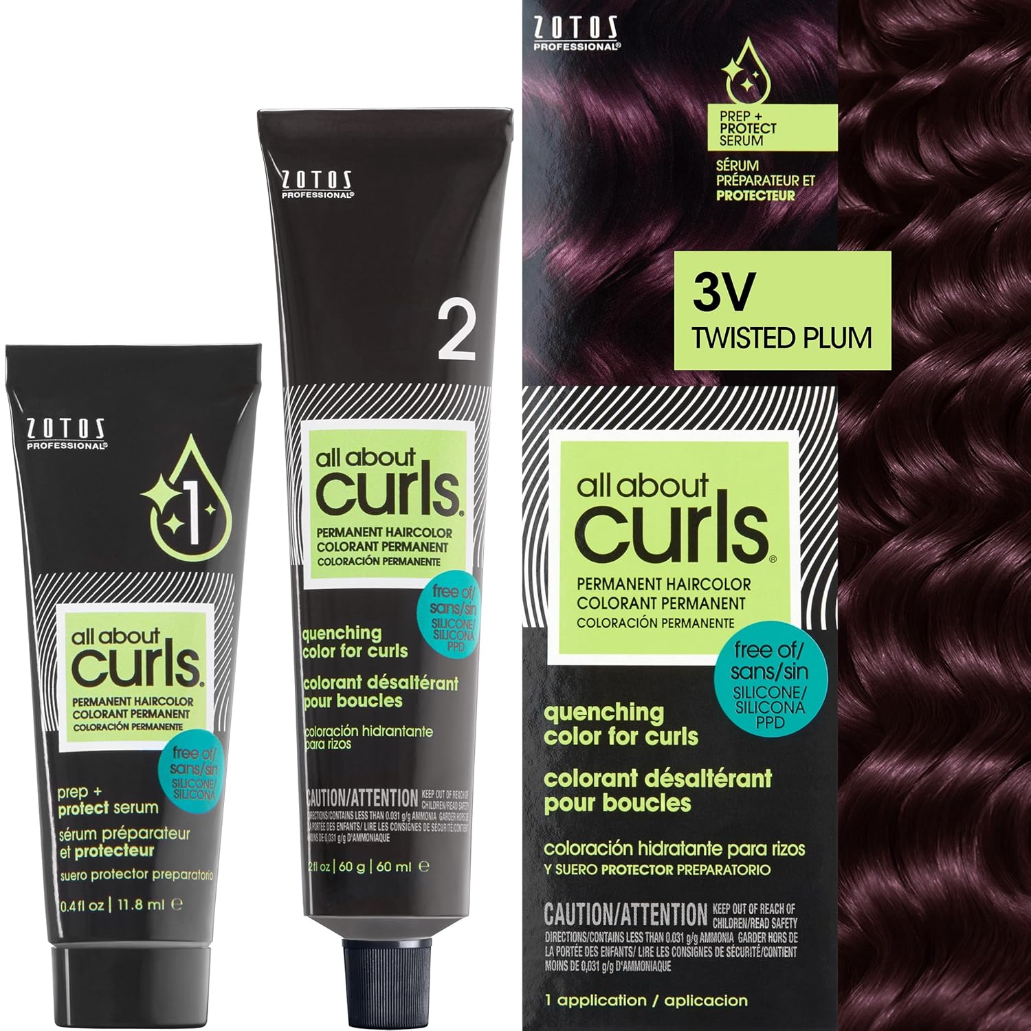 All About Curls 3V Twisted Plum (Medium Brown - Violet-Red Undertone) Permanent Hair Color (Prep + Protect Serum & Hair Dye For Curly Hair) - 100% Grey Coverage, Nourished & Radiant Curls