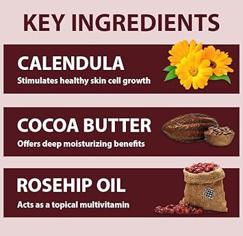 BOTANICAL INGREDIENTS: We’ve made sure to pick top-quality botanical ingredients to create this nourishing moisturizer. The combination of Calendula, Arnica & Rosehip oil creates a soothing feeling and can help in healing damaged skin. Cocoa butter helps in making this moisturizing cream glide right onto your skin, absorb easily, and instantly makes your skin feel silky and smooth
