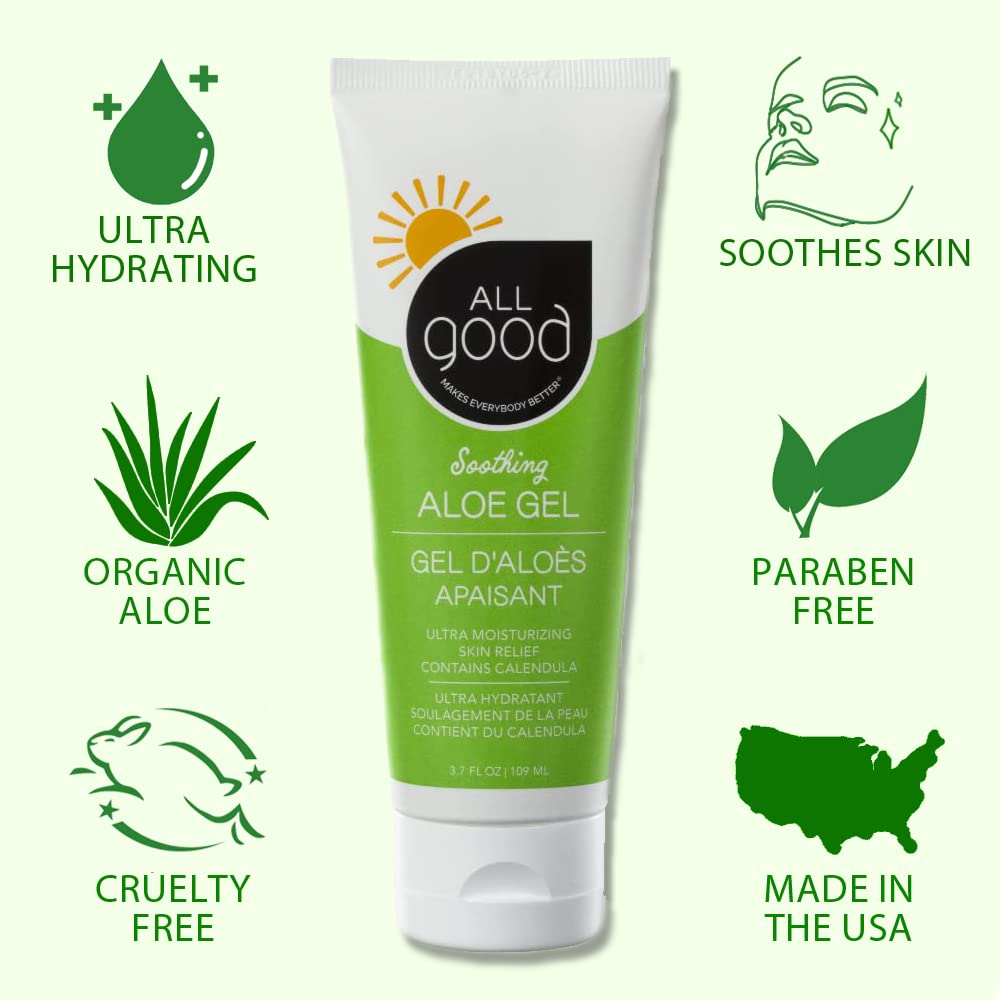 ALOE GEL: All Good Aloe Gel provides moisturizing relief to your skin anytime you need it as well as delivering plant-based skin soothing after a hot day in the sun. Made from aloe, apple extract, calendula and olive oil, our secret formula is specifically designed to provide your body with the maximum amount of "Ahhh!"