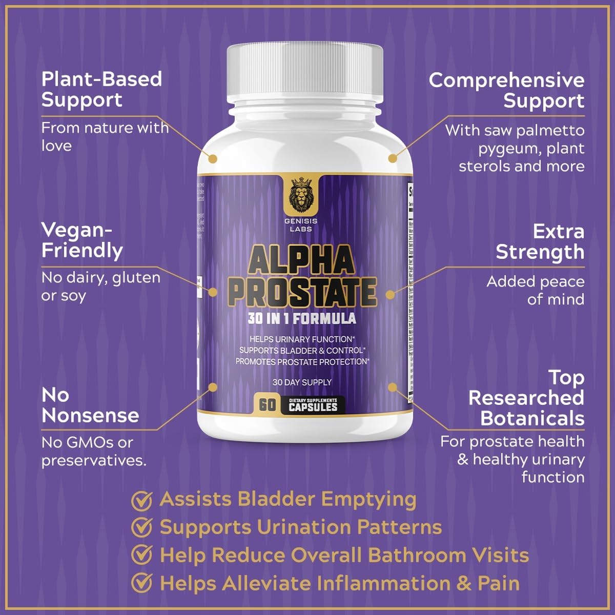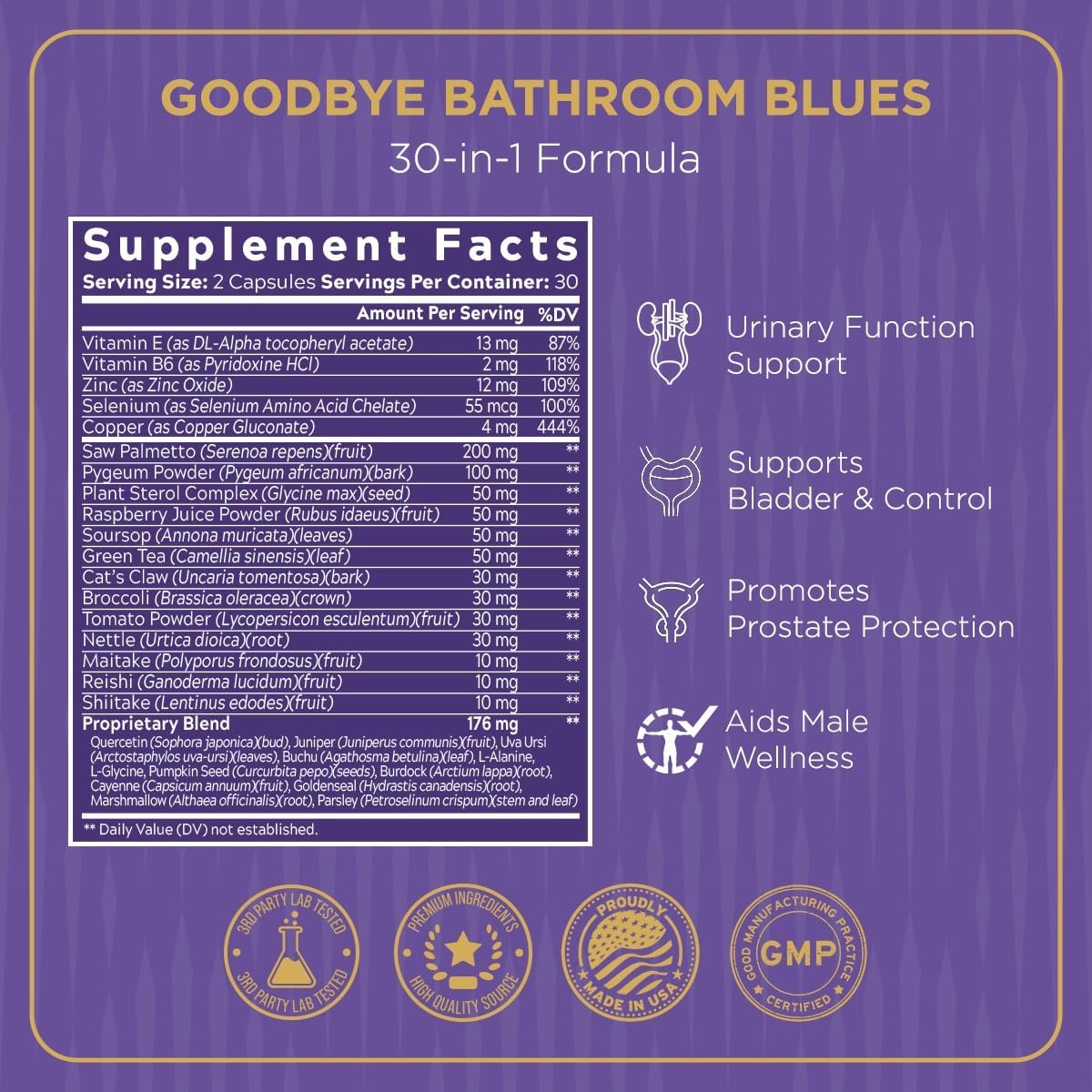 COMPLETE WELLNESS - Our comprehensive formula is plant based and supported by some of the most researched botanicals in the world. Saw Palmetto, Pumpkin Seeds, Stinging Nettle, Pygeum, Uva Ursi, Plant Sterol, and our Mushroom proprietary blend support male reproductive health and assist with healthy prostate function. Our other ingredients such as Zinc and Selenium not only support your prostate, but help boost your immune system and supports overall vitality. The 30-in-1 formula supports complete wellness
