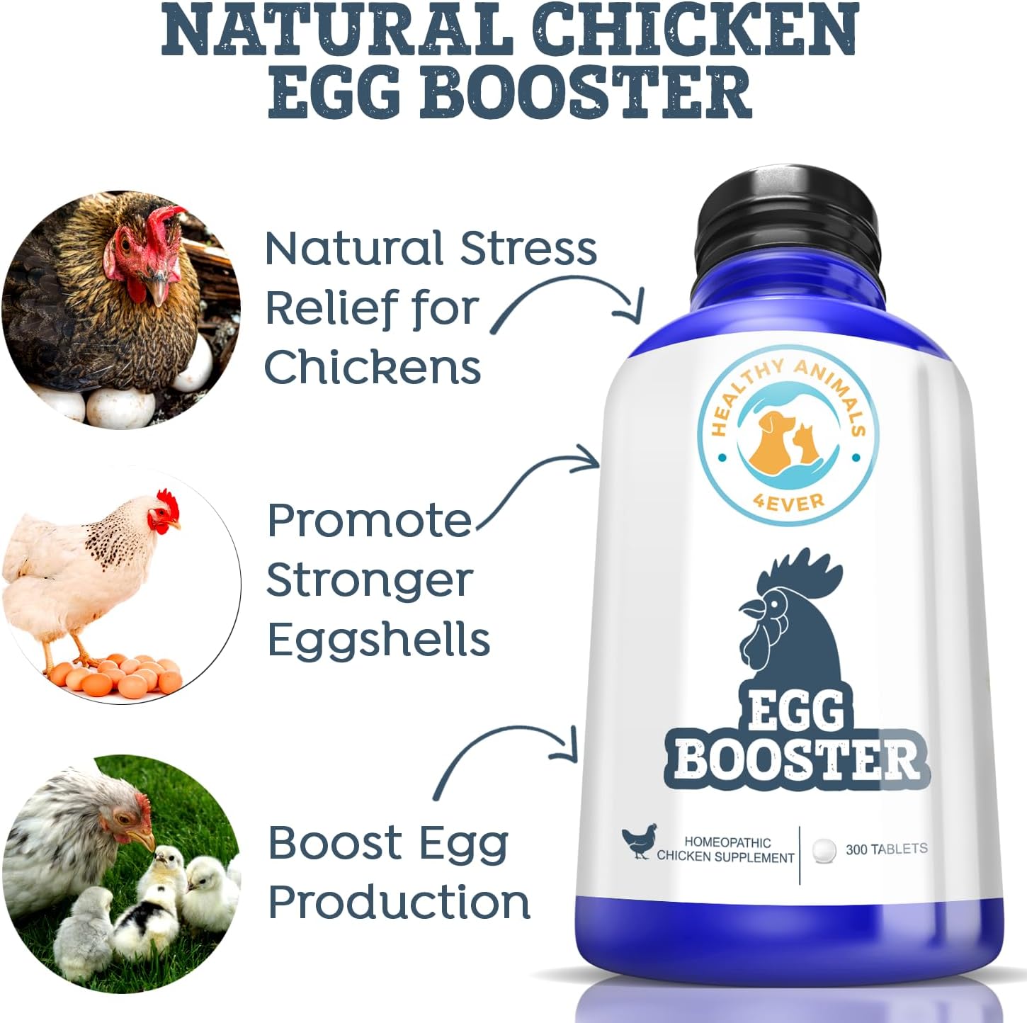 All-Natural Chicken Egg Booster Supplement - Natural Stress Relief To Promote Stronger Eggshells - Homeopathic & Highly Effective - 300 Chicken Egg Strengthening Tablets