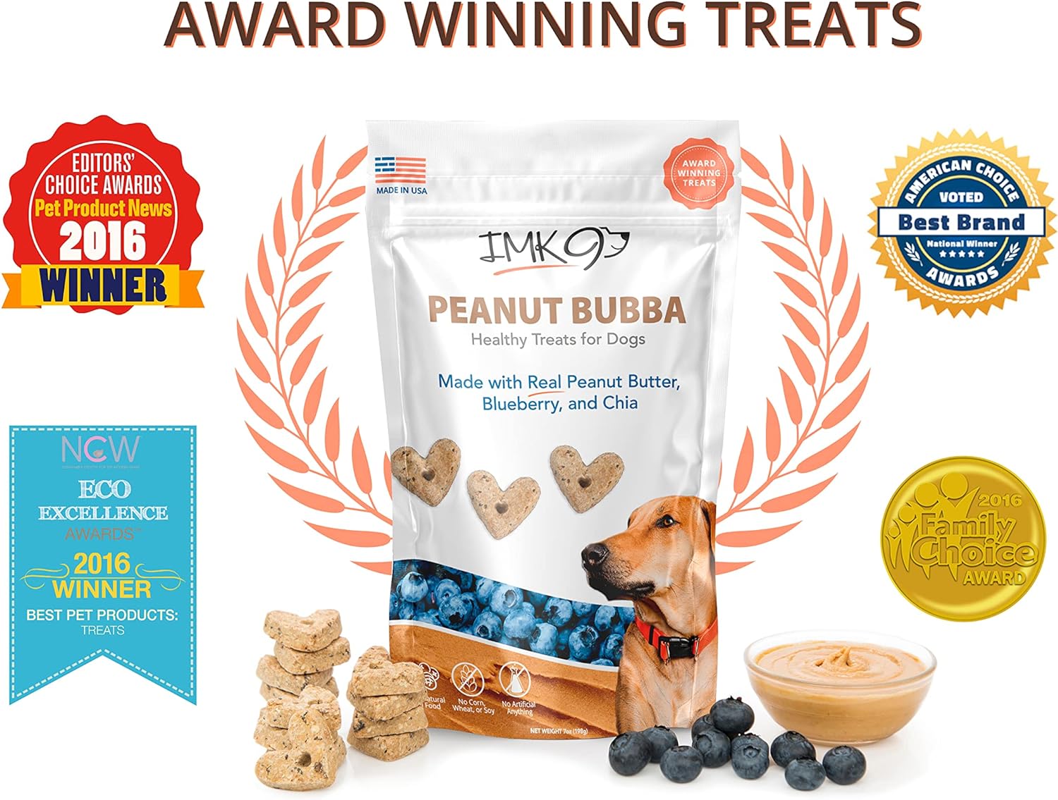 All Natural Puppy Peanut Butter Training Treats - Low Calorie Dog Treats – Low Fat Diet For Pets - Vegetarian, Baked, Crunchy Biscuits - Heart Shaped, Healthy Fiber, No Grain-Gluten, Made In Usa