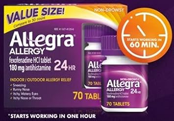 Allegra Adult 24 Hour Allergy Tablets, 180Mg, Noticeable Relief In 1 Hour, (70 Count )