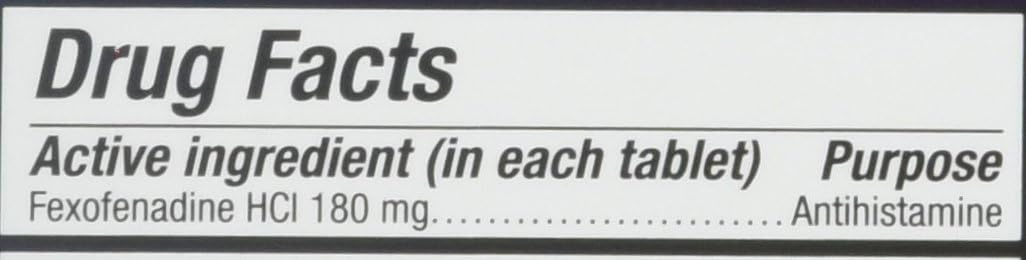 Allegra Allergy Original Prescription Strength 180mg - 70 Count,Package Weight: 0.091 kilograms,Ingredients: Fexofenadine HCl (180mg). Inactive Ingredients: Colloidal Silicone Dioxide, Croscarmellose Sodium, Hypromellose, Iron Oxide Blends, Magnesium Stearate, Microcrystalline Cellulose, Polyethylene Glycol, Povidone, Pregelatinized Starch, Titanium Dioxide