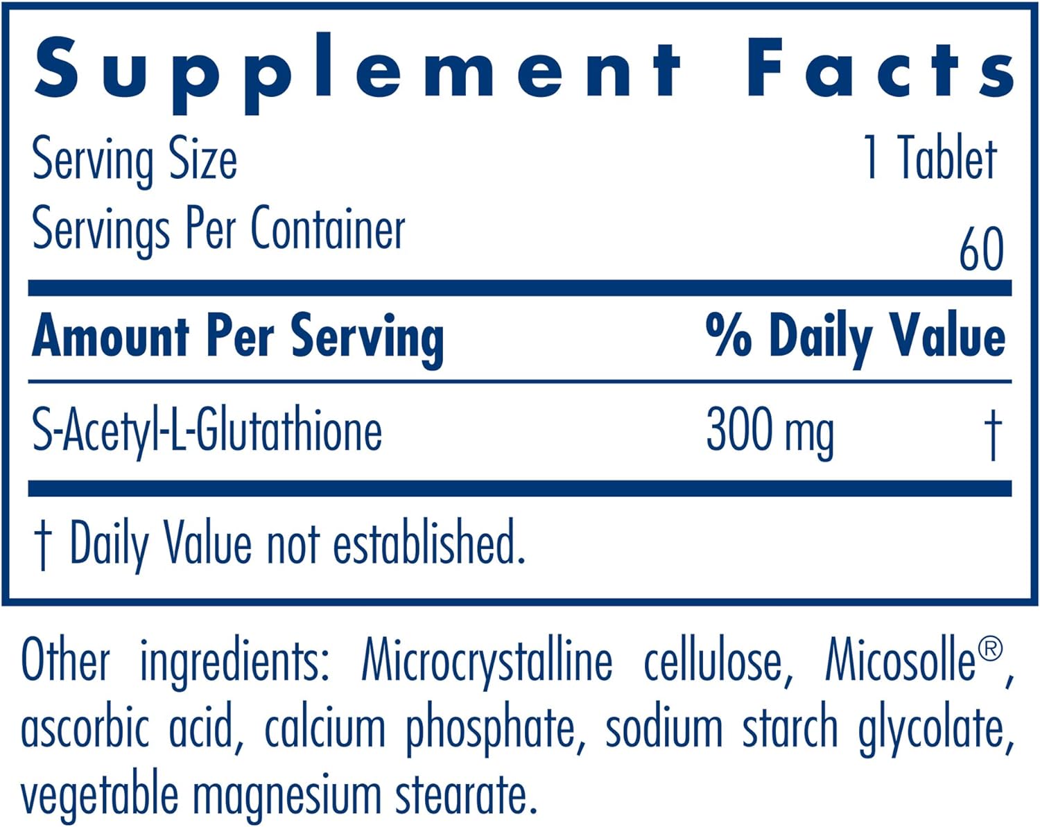 DESCRIPTION : Allergy Research Group - Acetyl Glutathione 300mg - Well-Absorbed, Hypoallergenic - 60 Tablets