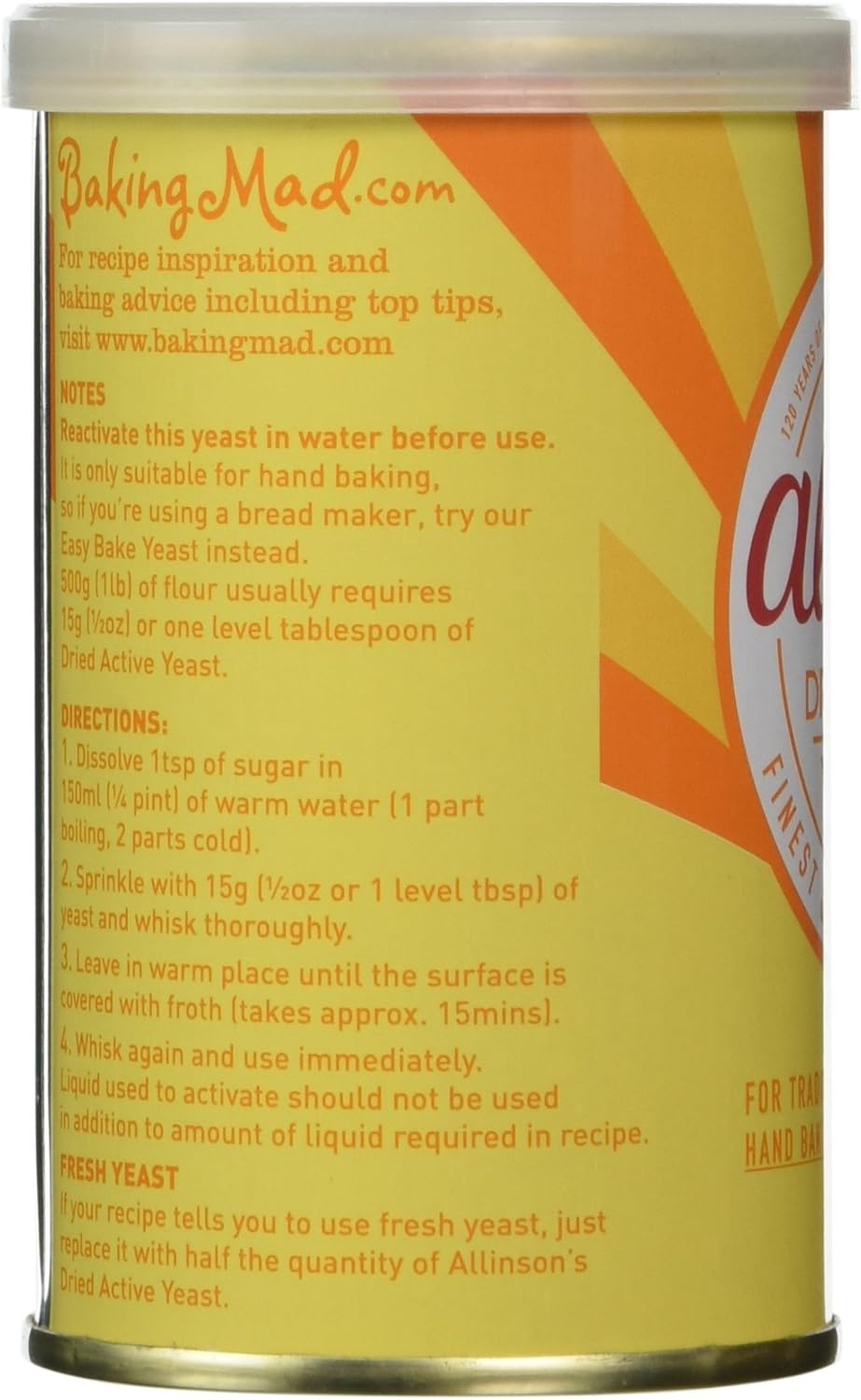 About this item Compressed yeast from which the moisture has been removed Essential ingredient in bread making Reactive in water for traditional hand baking It is a living organism and requires food, moisture and warmth to survive › See more product details,Compressed yeast from which the moisture has been removed,Essential ingredient in bread making,Reactive in water for traditional hand baking,It is a living organism and requires food, moisture and warmth to survive