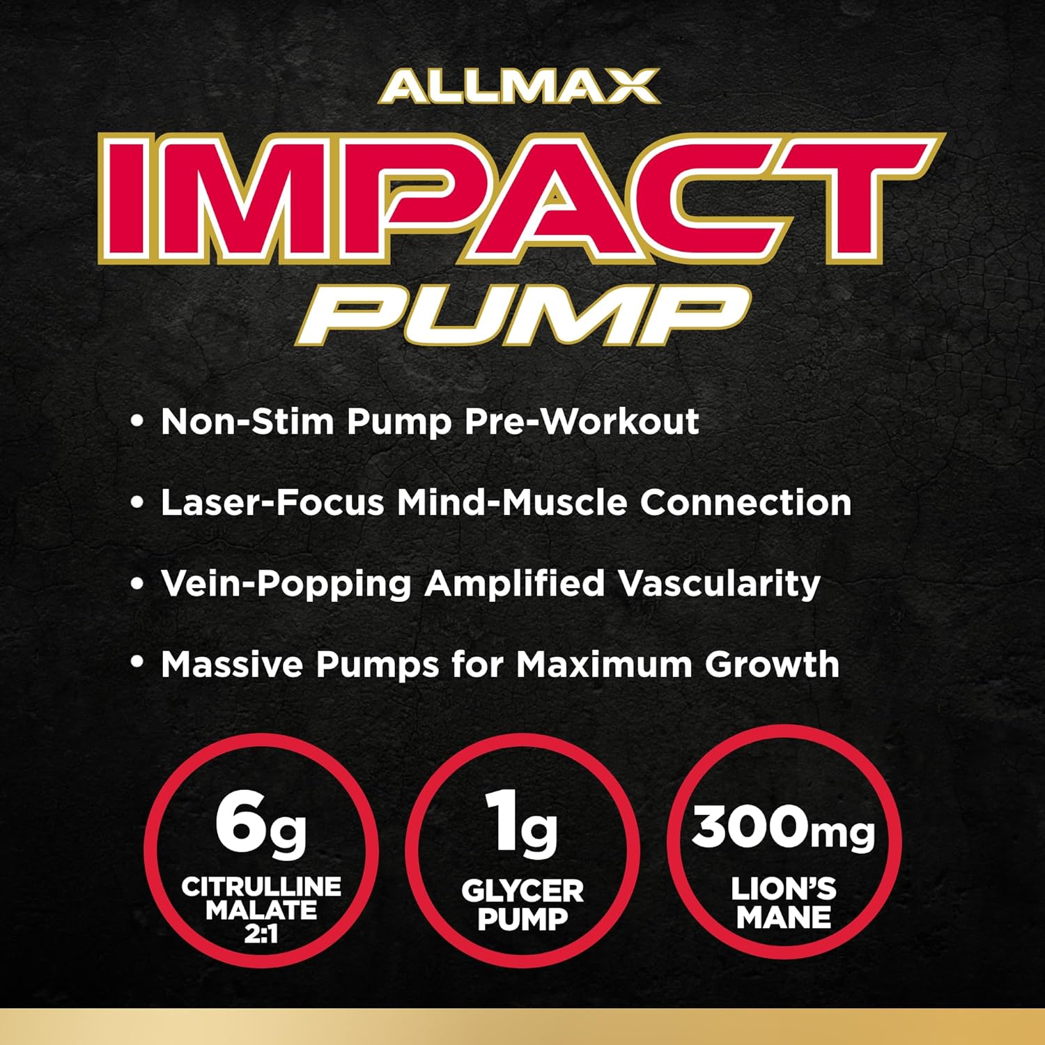 Amplify Your Gains - Power Your Pump Without The Stims With Allmax Impact Pump. It’S Loaded With The Same Powerful Ingredients Found In Impact Igniter, But It’S Also Fortified With Glycerpump Glycerol Powder To Take Your Pumps To A New Level
