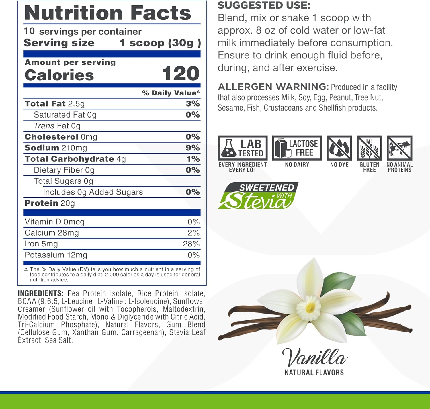 Plant Protein Isolate – Each Serving Contains 20 G Of 100% Pure Protein Made With Plant Protein Isolate. No Inferior Plant Concentrates Which Are Lower In Protein, Higher In Carbs, And Have A “Gritty” Aftertaste.* Complete Amino Acid Profile – Plant Proteins Often Have Insufficient Levels Of One Or More Essential Amino Acids (Eaas). By Combining A Precise Dose Of Pea Protein Isolate, Brown Rice Protein Isolate With Added Bcaas, Isoplant Contains A Truly Complete Protein Source.* Delicious Taste – By Using The Latest Protein Extraction Technology, We Removed Excess Carbohydrates, Polysaccharides, Gums And Fibers Which Give Traditional Plant Proteins That Gritty, Earth-Like Taste.* Isoplant Mixes Easily And Tastes Delicious Like Traditional Whey Protein Isolate Shakes. 6G Bcaas – Plant Proteins Are Naturally Low In Bcaas Which Are Needed For Muscle Growth And Recovery.* Each Serving Of Isoplant Contains 6 G Of Bcaas (4 G Naturally Occurring + 2 G Added). Lab Tested Ingredients – Every Ingredient In Isoplant Is Lab Tested Before It’S Made To Ensure Purity And Product Freshness.* High In Iron – Plant Proteins Are Often Low In Iron Compared To Meat Sources Which Can Lead To Mineral Deficiencies.* Just 1 Serving Of Isoplant Contains 33% Of The Daily Value (Dv) For Iron.+* Zero Added Sugar – Contains Less Than 1 G Of Sugar (Naturally Occurring). Low Fat & Zero Cholesterol