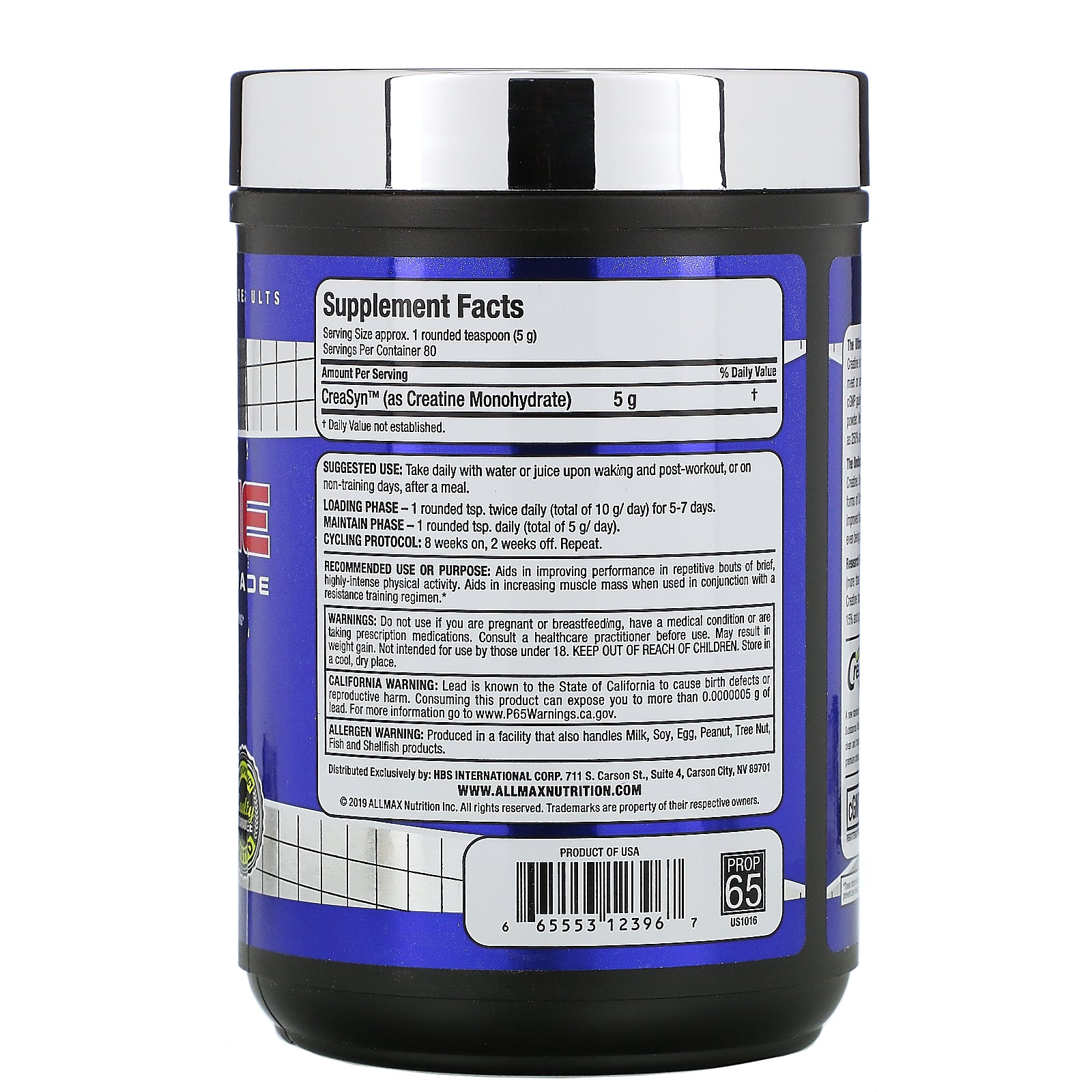 The Ultimate in Safety and Purity - ALLMAX Pharmaceutical Grade Creatine is the ultimate in purity and safety; rigorously held to strict standards that meet or exceed 3rd-Party independent testing for WADA Banned Substances and cGMP guidelines. In addition, our Creatine is micronized to an ultra-fine, free-flowing powder. Most Creatine powders on the market today have particles that are as much as 250% larger!