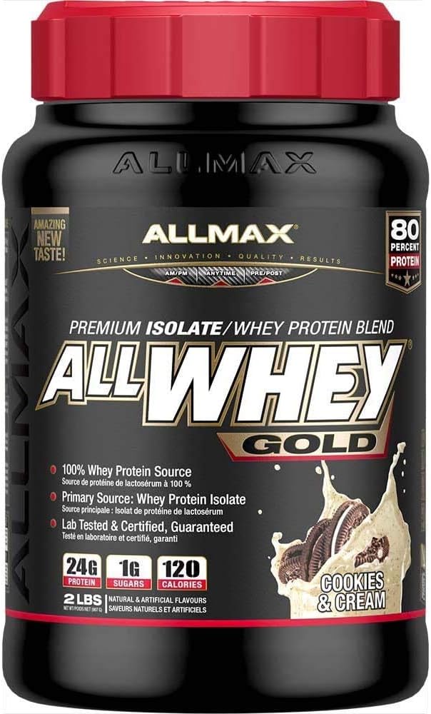 Allmax Nutrition Gold Allwhey, Cookies & Cream - 2 Lb - 24 Grams Of Protein Per Scoop - Gluten Free, Low Carb & Low Sugar - Approx. 30 Servings