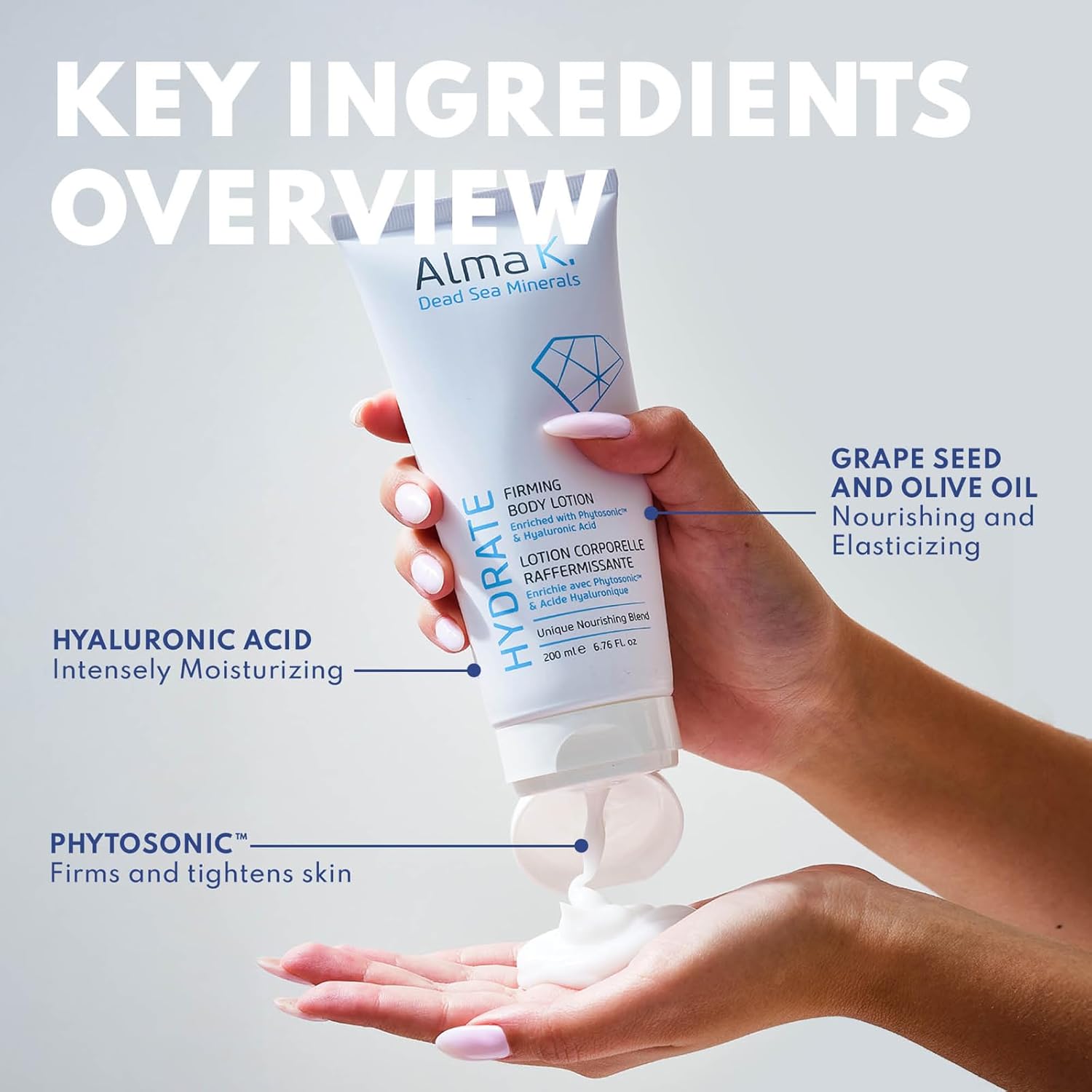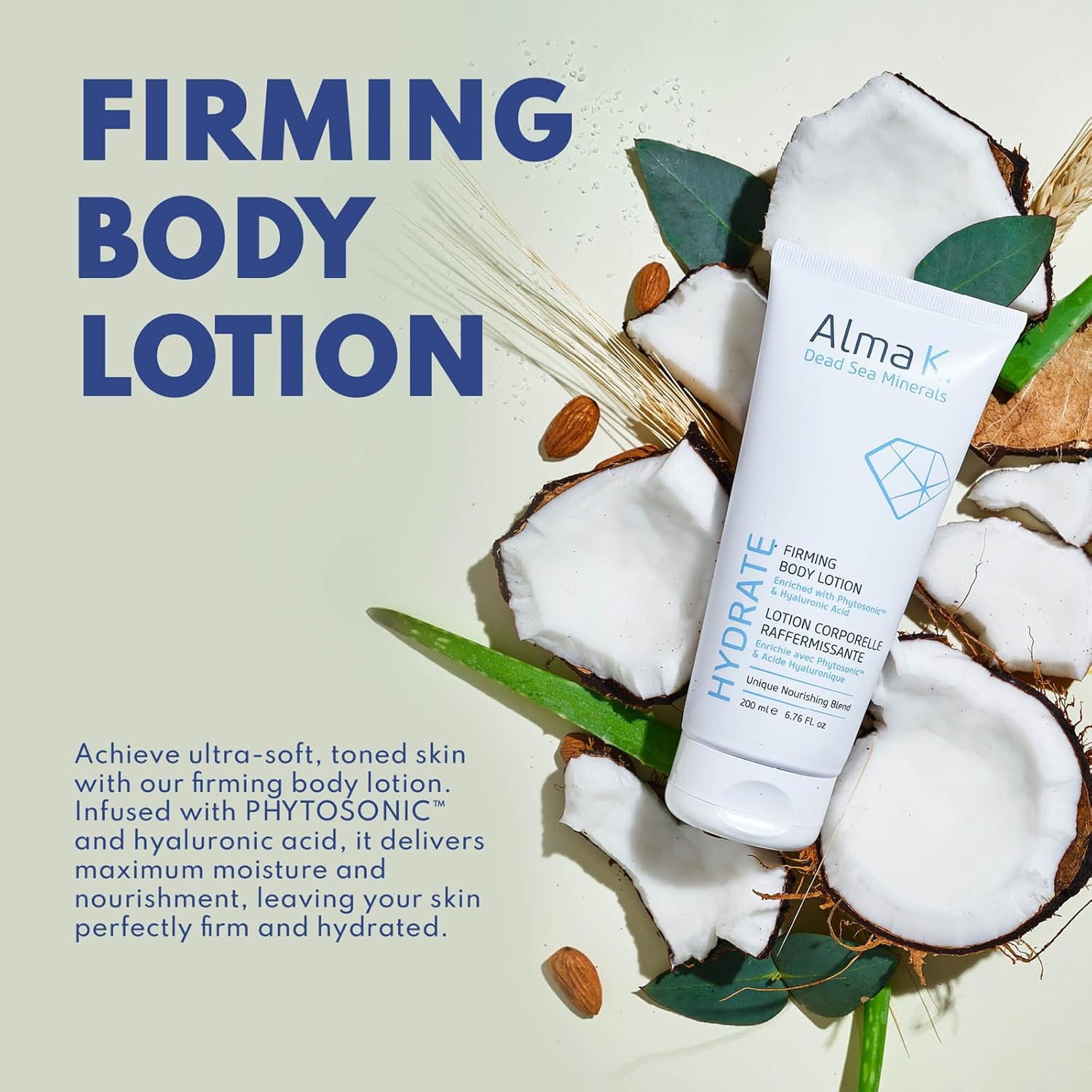 About this item Infused with Hyaluronic Acid: Alma K Firming Body Lotion is rich in Dead Sea minerals and infused with hyaluronic acid. This body cream for women delivers powerful hydration and essential nutrients to the skin. See more product details,Infused with Hyaluronic Acid: Alma K Firming Body Lotion is rich in Dead Sea minerals and infused with hyaluronic acid. This body cream for women delivers powerful hydration and essential nutrients to the skin