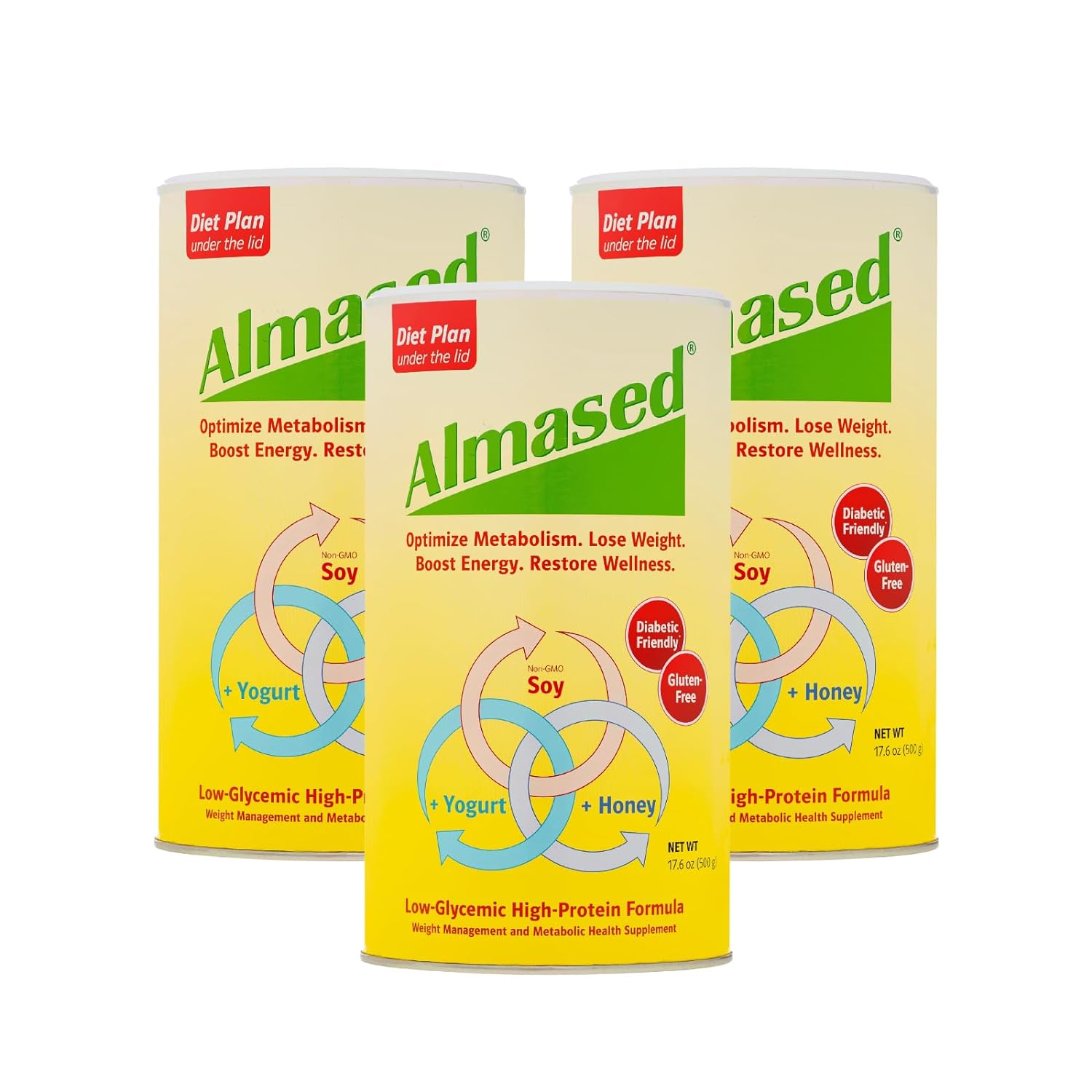 Almased Meal Replacement Shake - Low-Glycemic High Plant Base Protein Powder- Nutritional Weight Health Support Supplement - Original Flavor - 17.6 Oz