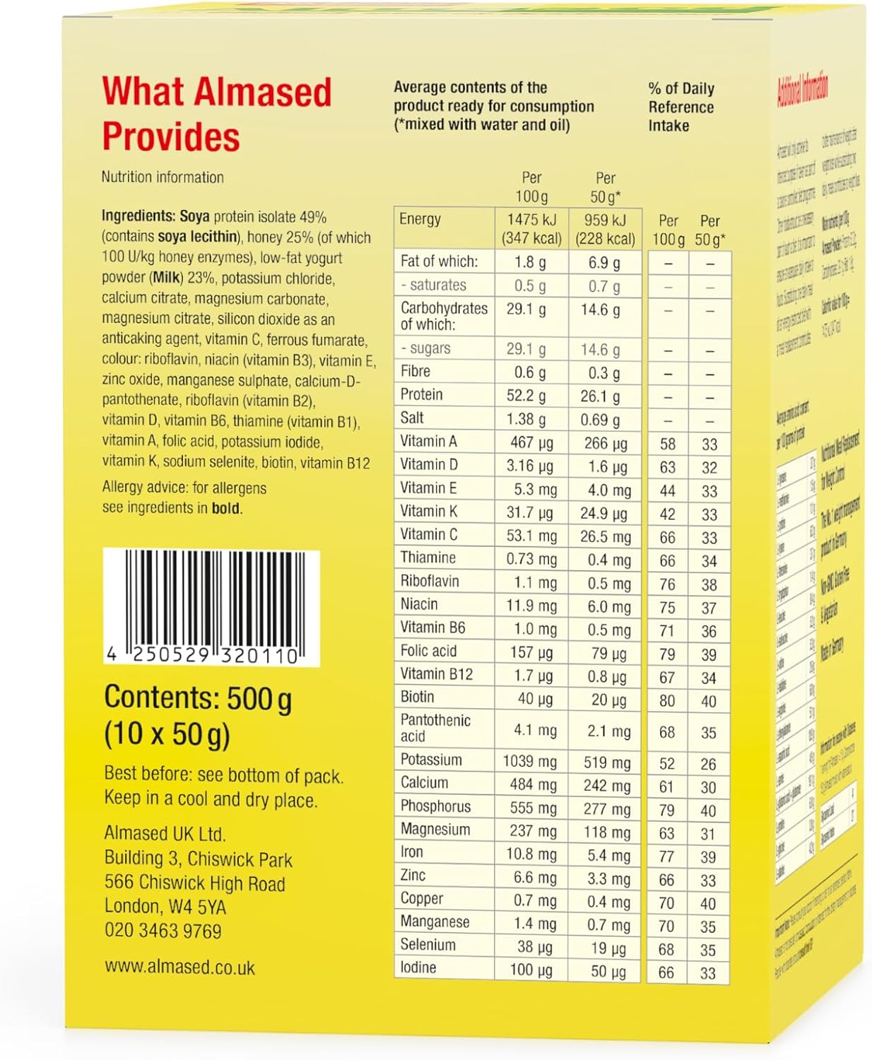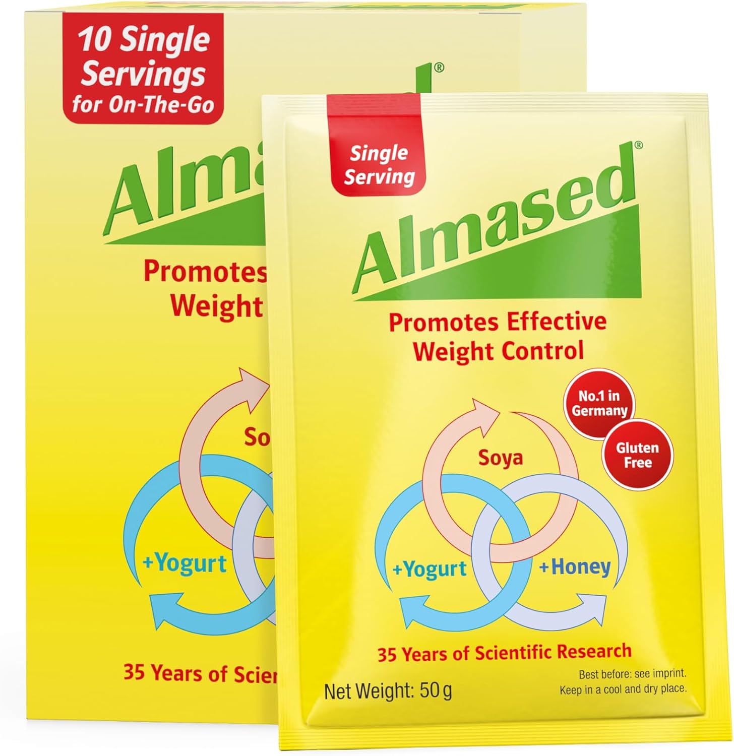 Almased Single Servings Meal Replacement Shake - Protein Powder For Weight Loss, 10 X 50 G