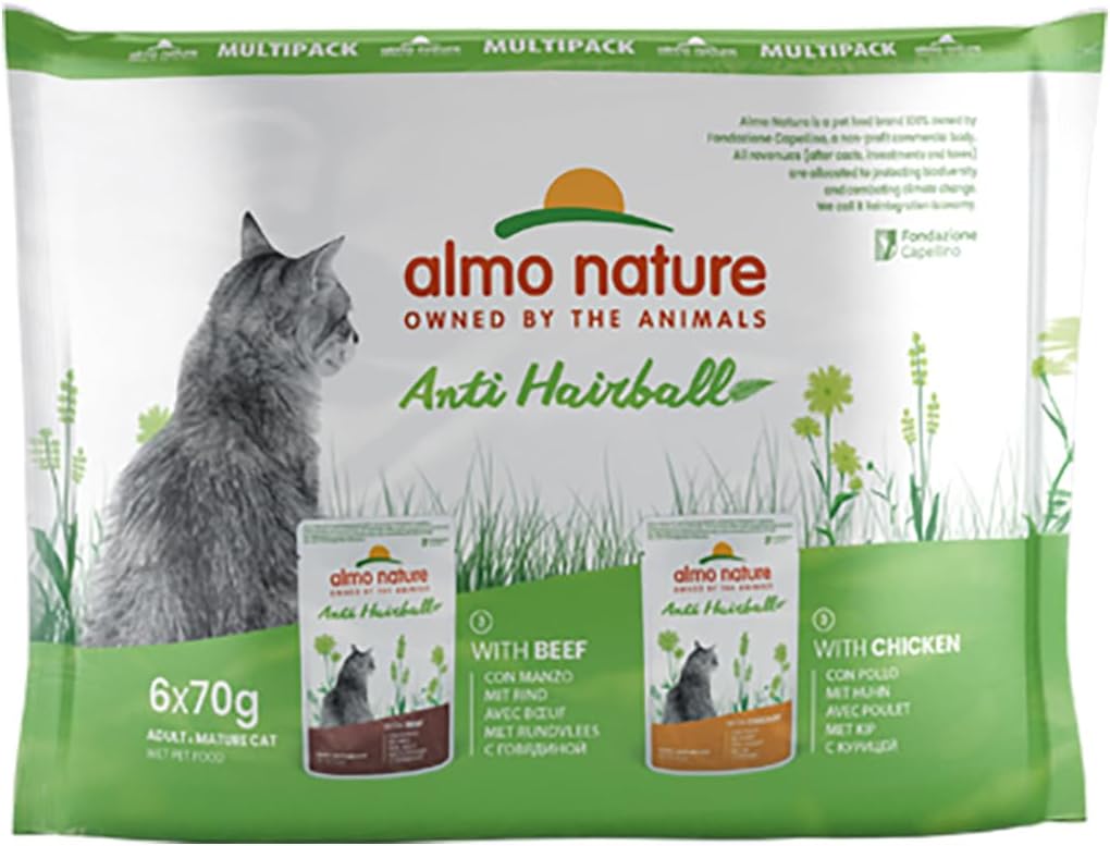 Almo Nature Functional Anti Hairball Multipack Complete Wet Cat Food -3 Pouches With Beef/3 Pouches With Chicken, (Pack Of 6 Pouches X70G)66559
