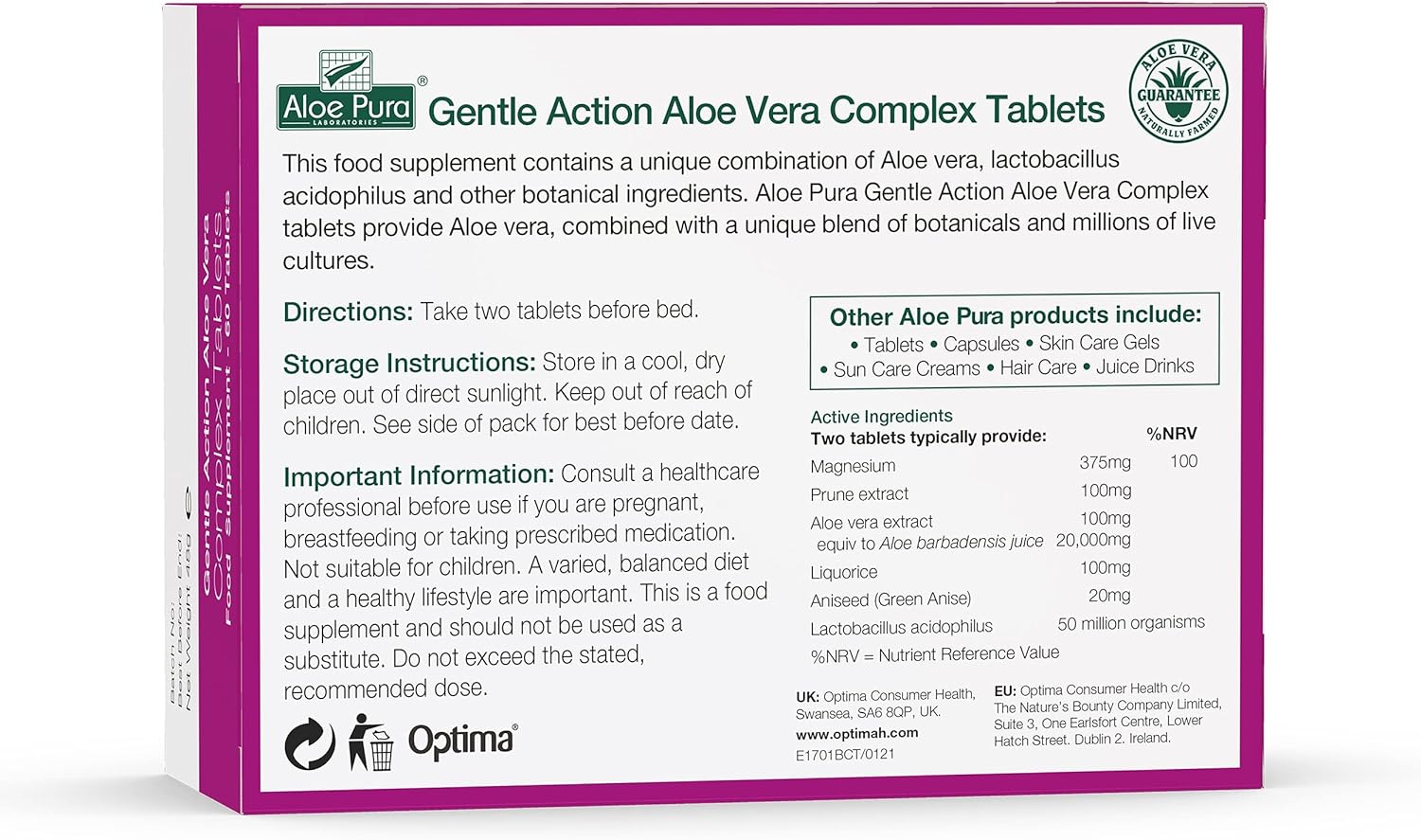 Aloe Pura Aloe Vera Gentle Action Complex Tablets, Natural, Vegetarian, Cruelty Free, Food Supplement, Botanical Blend, 60 Tablets