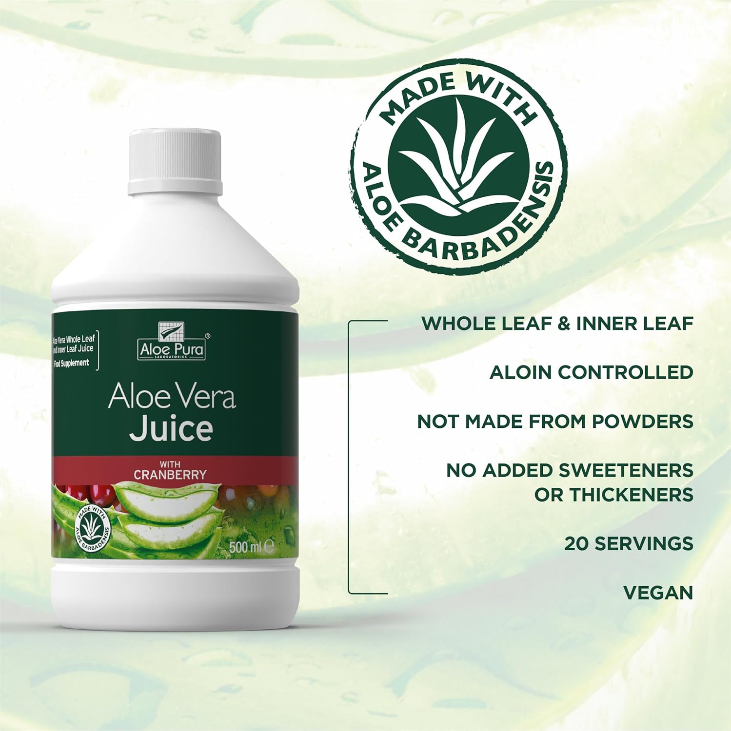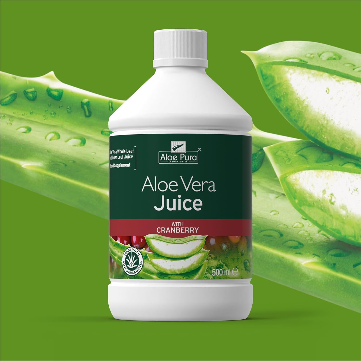 Aloe Pura Aloe Vera Juice With Cranberry , Natural , Vegan , Cruelty Free , Food Supplement, 500 Ml