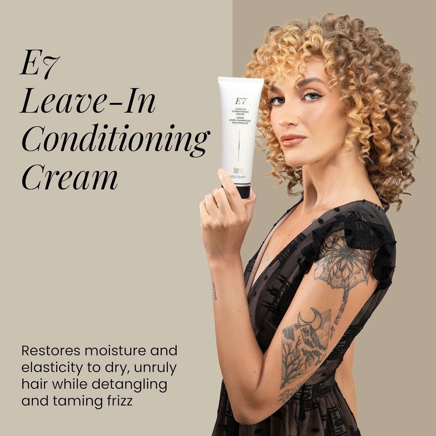 Product Description The ALOXXI E7 Leave-In Conditioning Cream delivers intense hydration and repairs dry, frizzy hair. Enriched with a blend of 7 essential oils, including Olive, Jojoba, and Grape, this lightweight hair cream smooths frizz, restores elasticity, and protects color-treated hair from UV damage. The ColourCare Complex ensures long-lasting vibrancy, while the weightless formula leaves hair manageable and shiny without build-up. This leave in conditioning and detangling solution is free from harsh chemicals, including sulfates and parabens, and safe for color-treated hair. Brand Story EXPERT CARE FOR COLORFUL HAIR We are passionate hair enthusiasts united in sharing our knowledge and love of hair color, care and styling. Our industry tested, clinically proven formulas make hair healthier, shinier and stronger,Intense Hydration & Repair: Deeply nourishes and restores moisture to dry, unruly hair while taming frizz,7 Essential Oils: Infused with Olive, Jojoba, and Grape Oils to boost elasticity and add shine,Frizz Control & Smoothing: Weightless formula smooths and softens hair while reducing static and breakage,Color Protection: Proprietary ColourCare Complex protects hair from UV damage and prevents color fading,Signature Scent: Delicately fragranced with fresh fruit and floral top notes balanced against base notes of sandalwood and musk