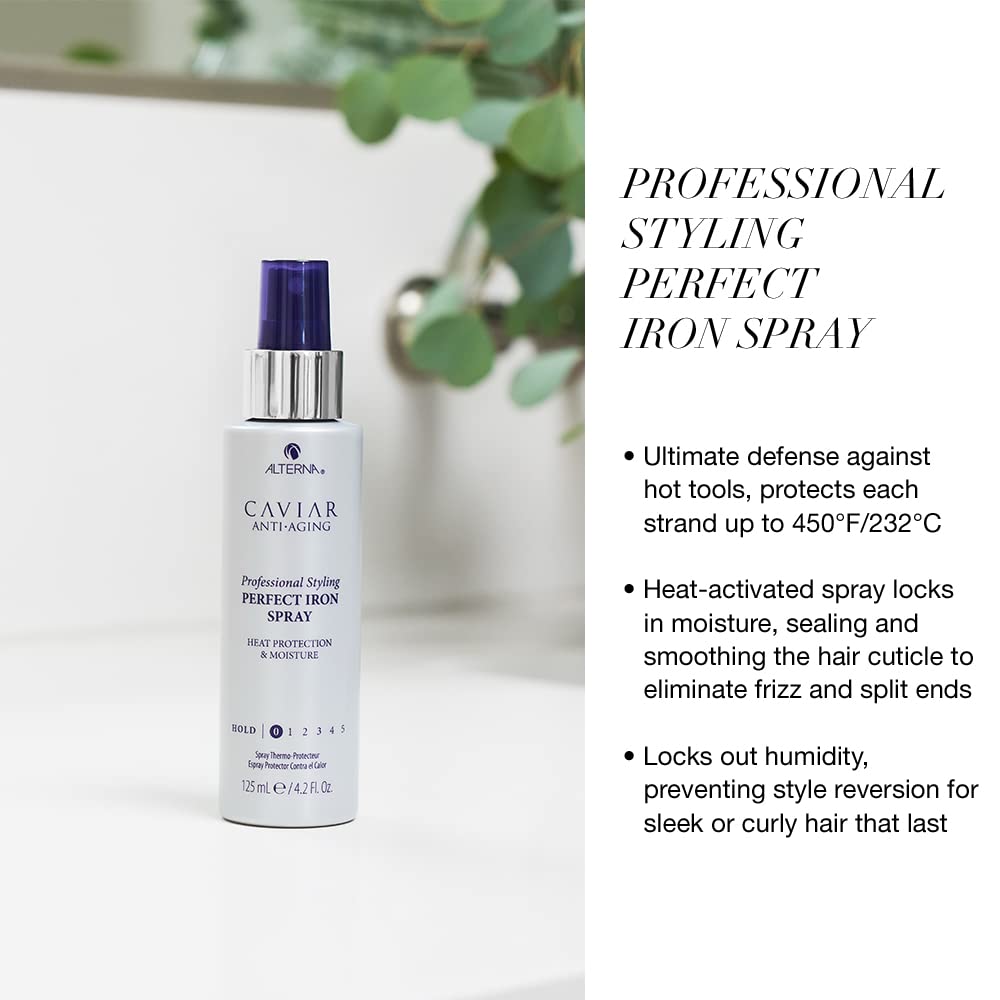 Alterna Caviar Professional Styling Perfect Iron Spray, 4.2 Fl Oz | Provides Heat Protection & High Shine | Sulfate Free
