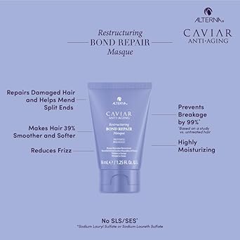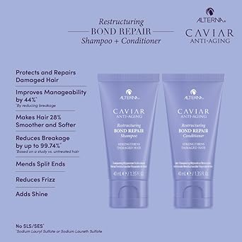 Alterna Haircare Caviar Anti-Aging Restructuring Bond Repair Travel Kit - Shampoo, Conditioner, Masque | Strengthens And Protects Damaged Hair