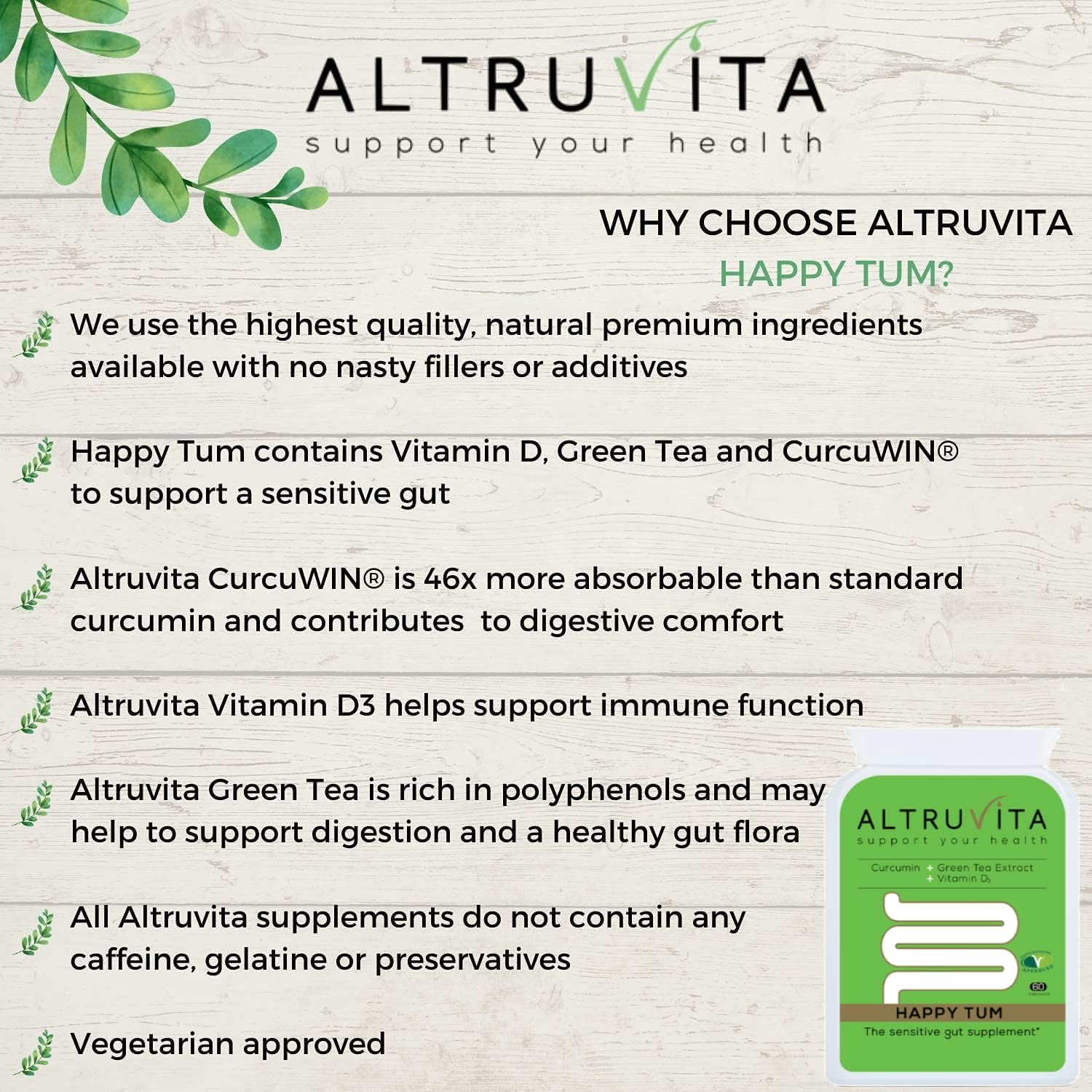 Altruvita Happy Tum | Vitamin D3, Curcumin & Green Tea | 60 Days Supply | Immune Support | Sensitive Gut Supplement | 60 Capsules | Vegetarian Approved
