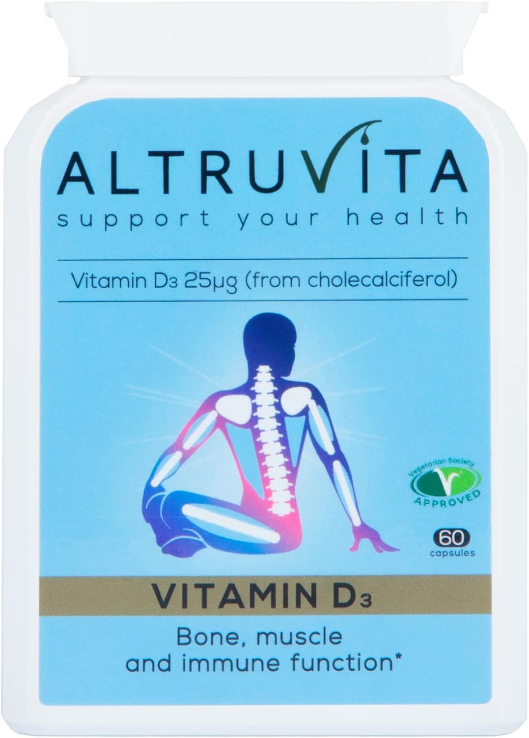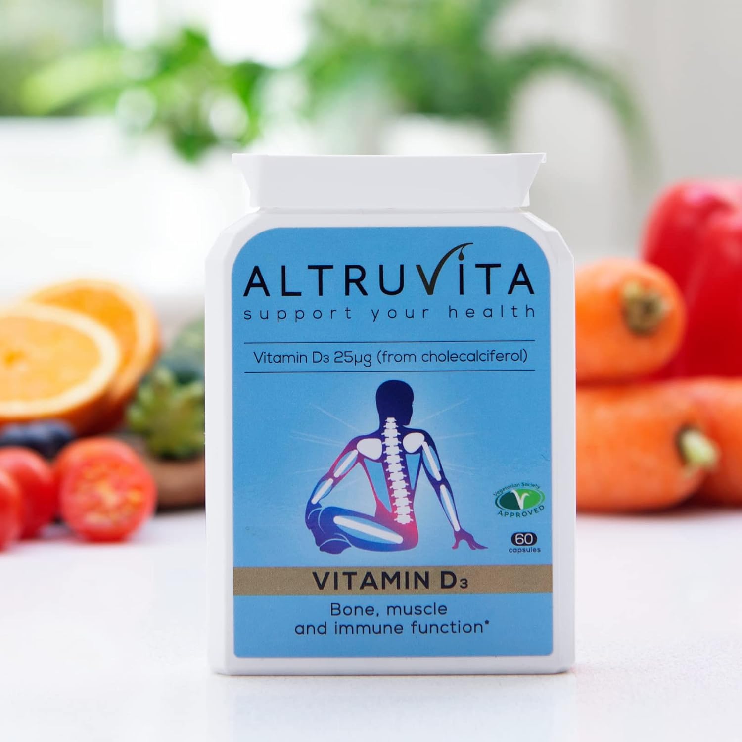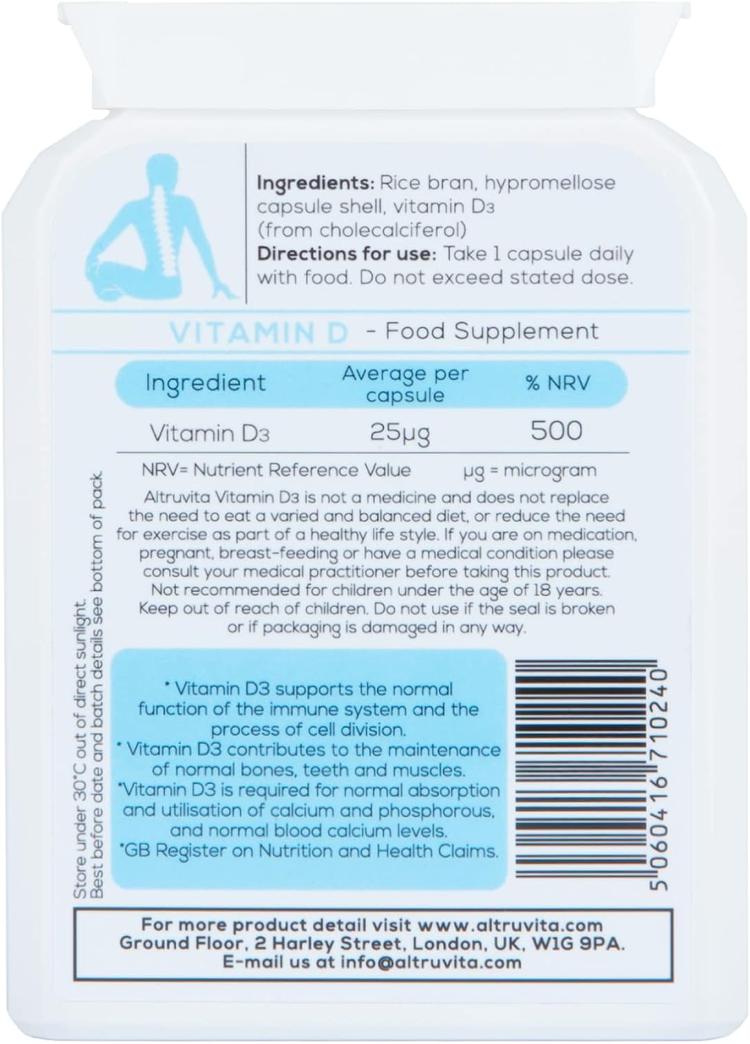 Altruvita Vitamin D3 From Cholecalciferol | 25µg | 1000Iu | 60 Days Supply | 500% Of Daily Requirement | Bone, Muscle & Immune Support | 60 Capsules | Vegetarian Approved