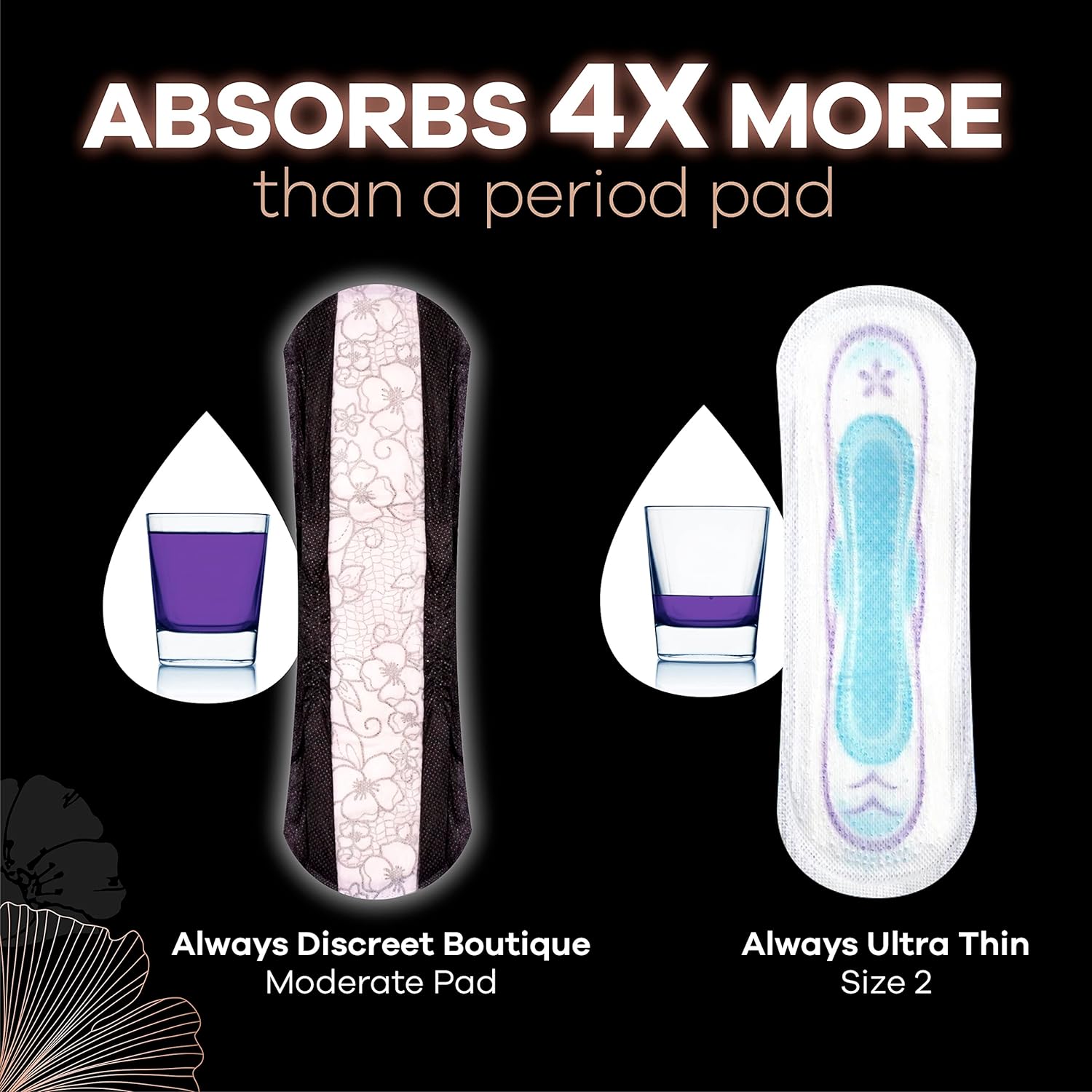 Always Discreet Boutique Adult Incontinence & Postpartum Pads For Women, Size 4, Moderate Absorbency, Regular Length, 48 Count x 3 Packs (144 Count total)